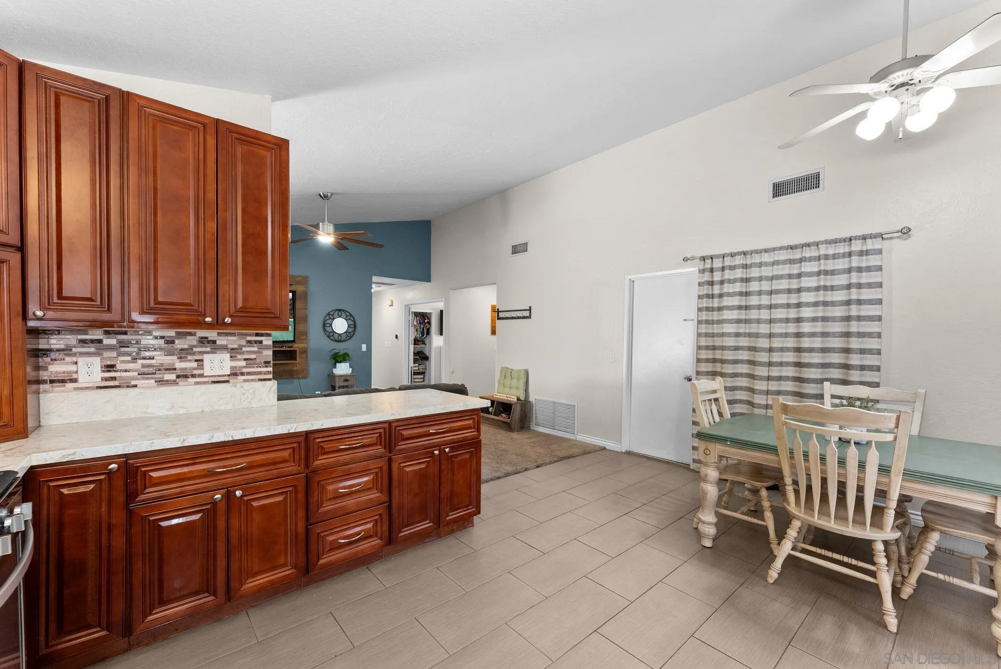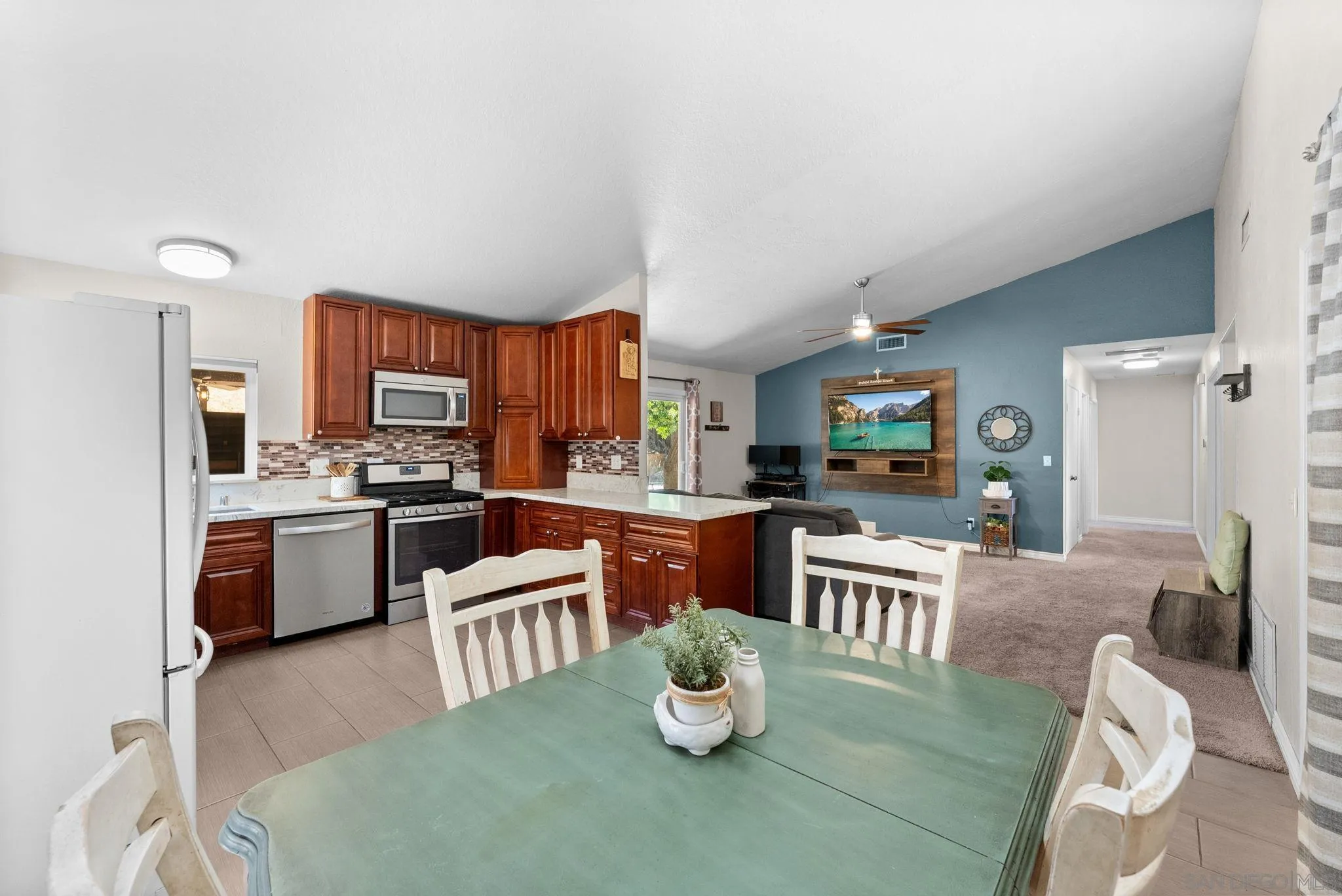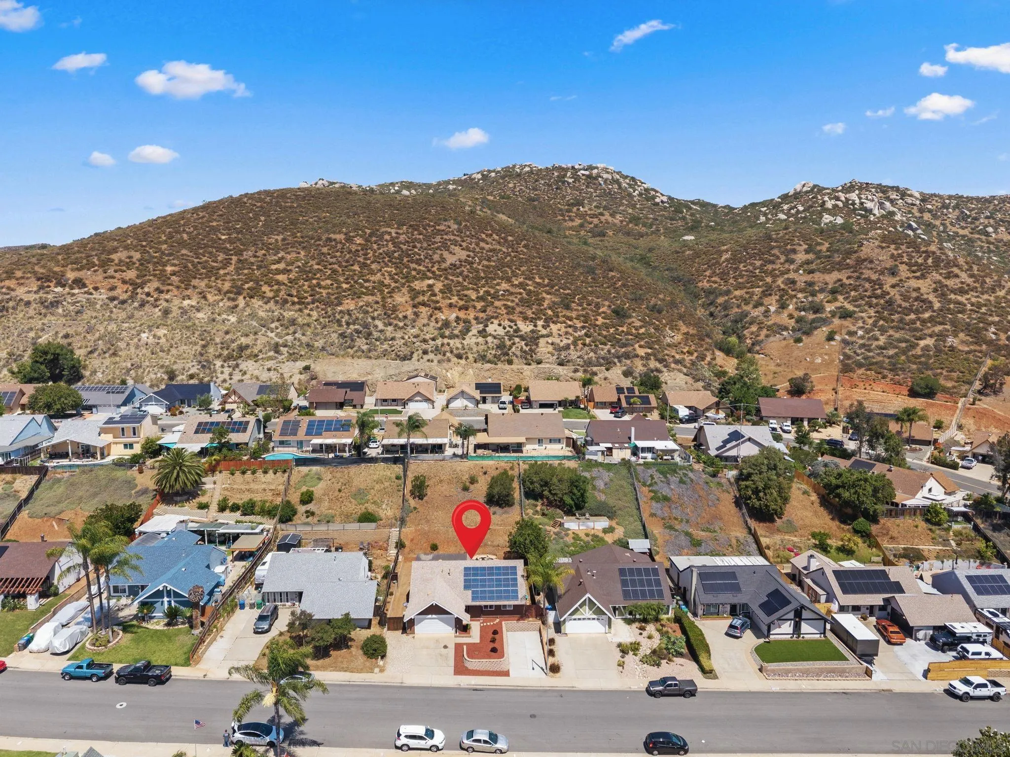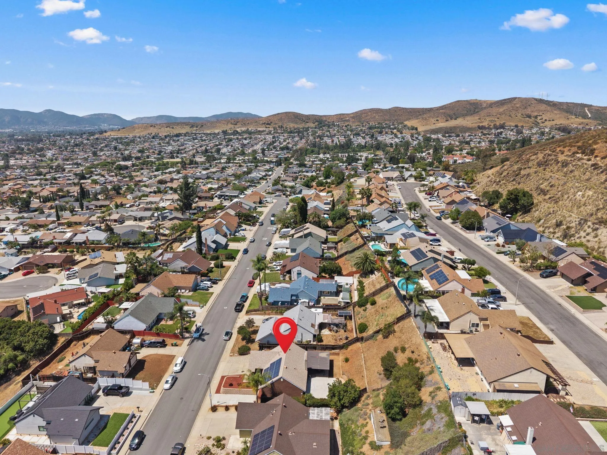 Tucked into one of Santee’s quietest neighborhoods, this Santana Hills gem offers the perfect balance of convenience and serenity—just minutes from top-rated schools, shopping, major highways, and the Santee Sportsplex, yet peacefully removed from the everyday hustle. Enjoy beautiful mountainous views that create a stunning backdrop for some of the best sunrises and sunsets in the area. This beautifully maintained 3-bedroom, 2-bath home is loaded with thoughtful upgrades, giving the next owner true peace of mind. A newer roof was installed prior to the 200-amp electrical panel upgrade, and solar adds efficiency and long-term savings. Dual pane windows and sliders throughout enhance energy efficiency, comfort, and natural light, while vaulted ceilings create an open, airy feel. Inside, you’ll find a full suite of newer appliances, including refrigerator, stove, microwave, washer, dryer, and hot water heater. The home also features an insulated garage door with a newer opener, plus low-maintenance landscaping in both the front and backyard. The upgraded kitchen is both stylish and functional, featuring quartz countertops and under-cabinet lighting—perfect for everyday living and entertaining. Alongside the driveway, a spacious concrete pad framed by a decorative block retaining wall provides ideal RV parking with hookups—or plenty of room for additional vehicles and toys. This is the kind of home that checks all the boxes—comfort, upgrades, views, and location.