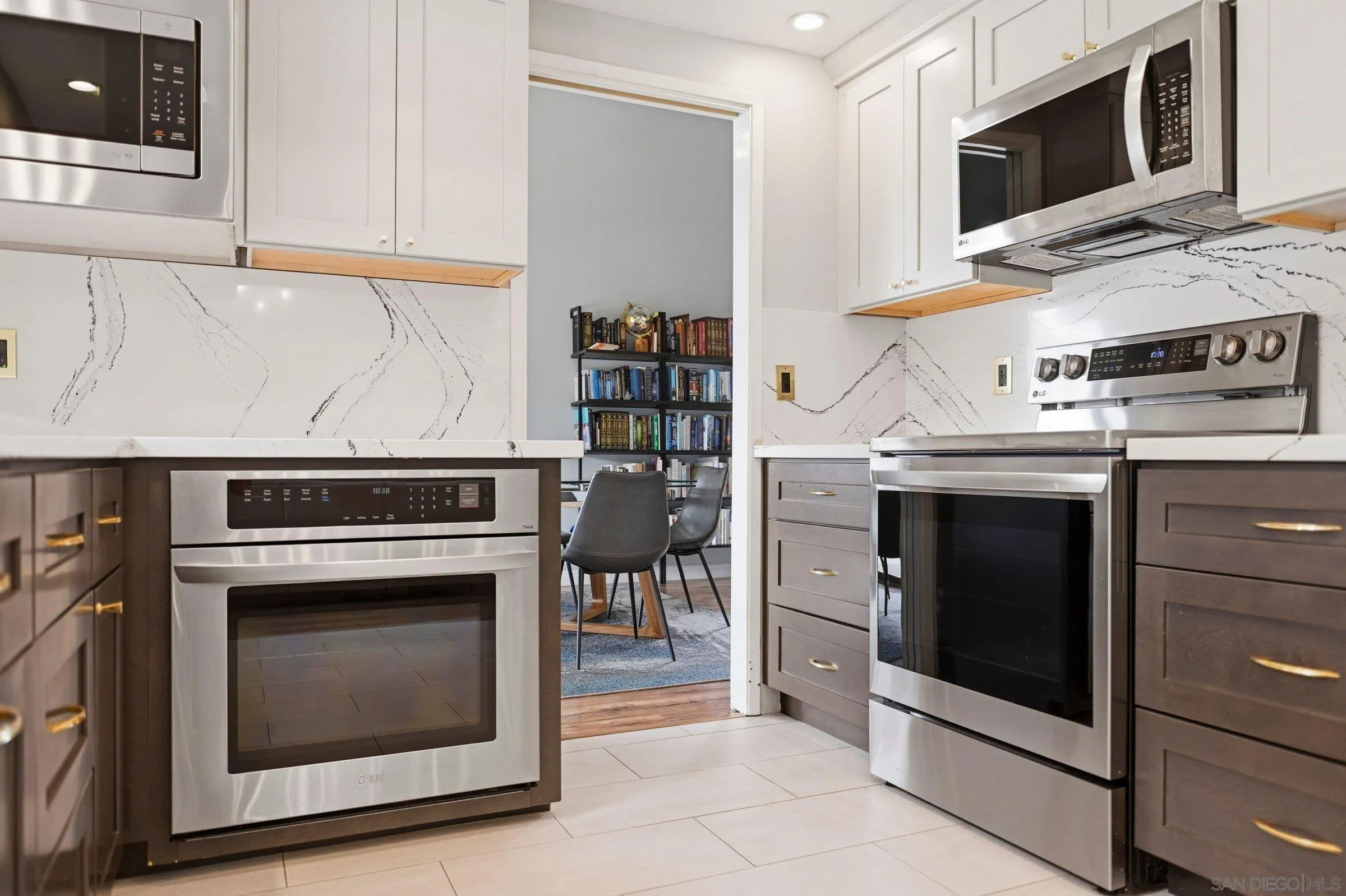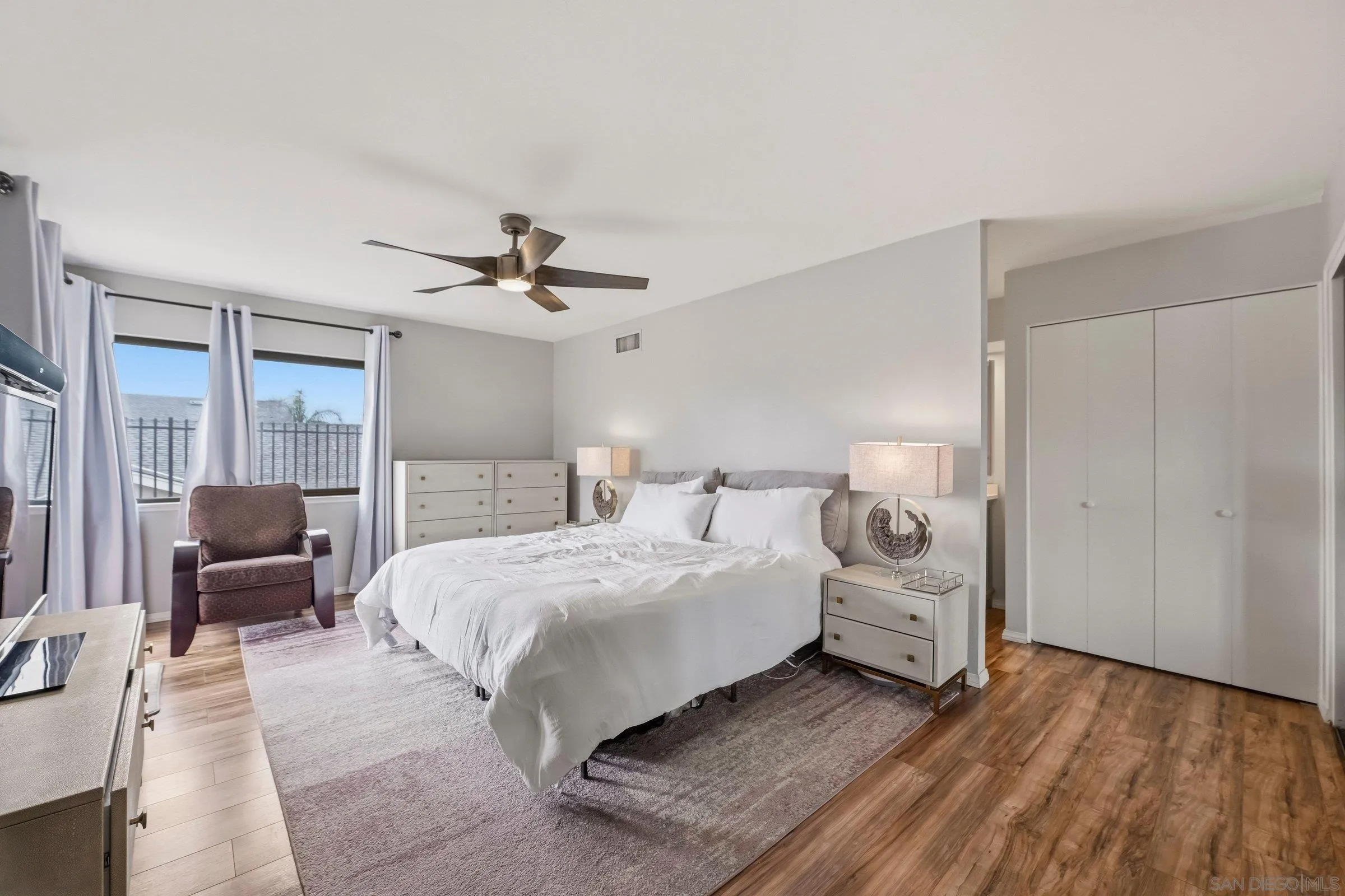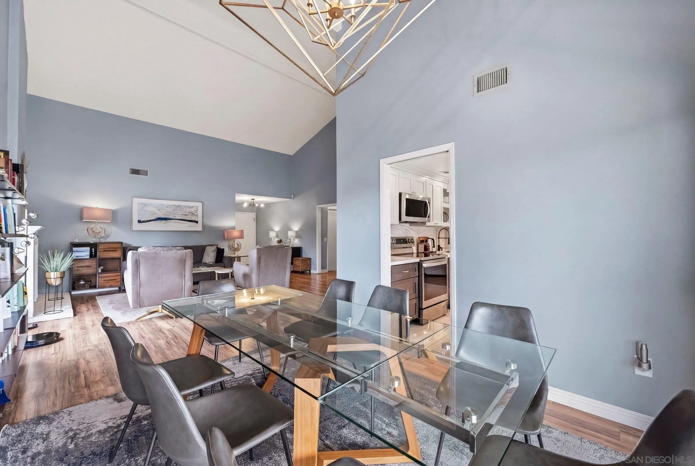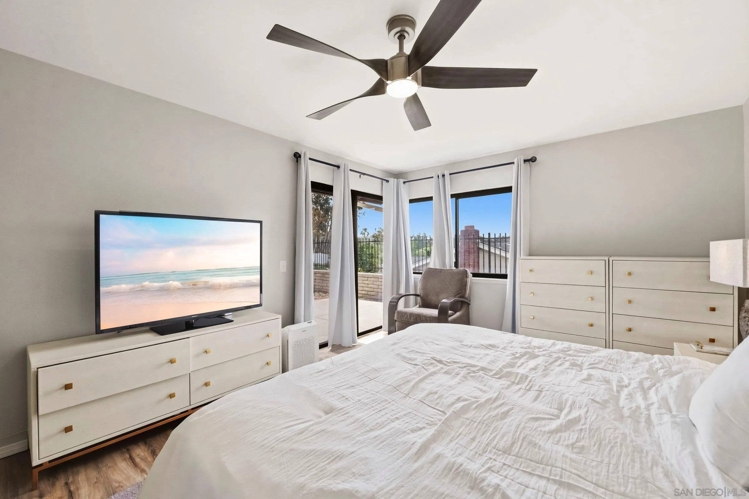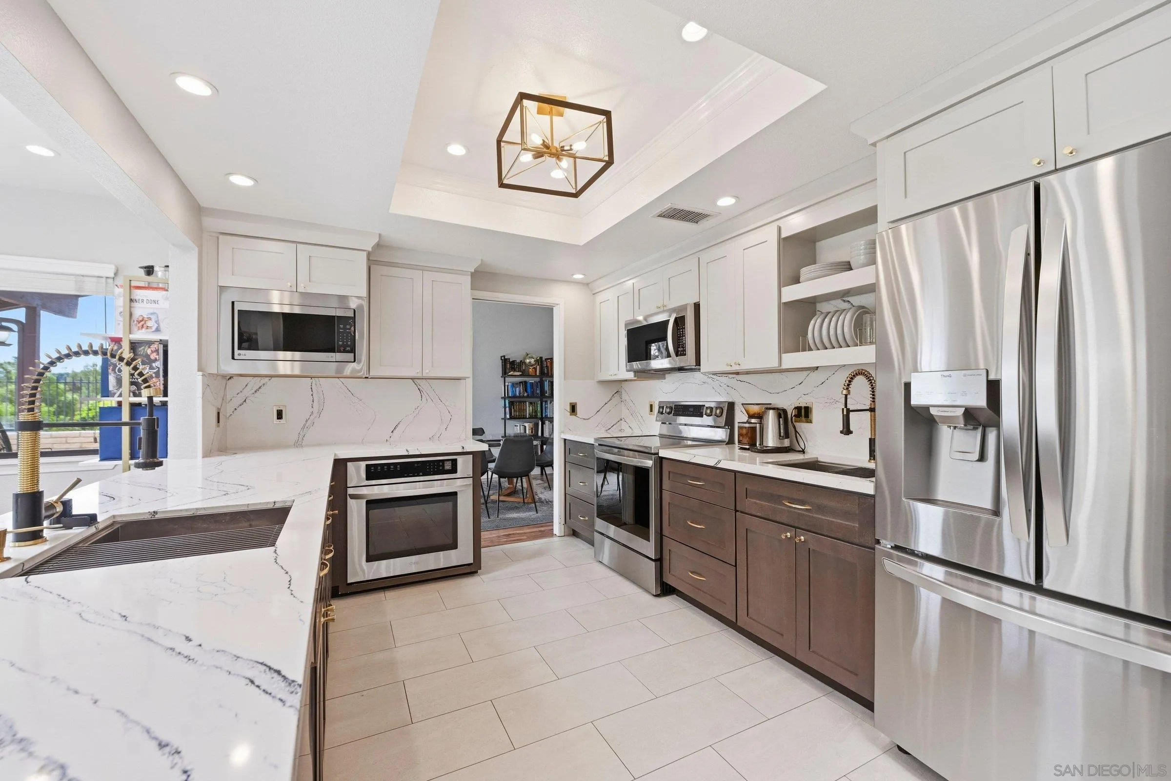Set within the coveted Stoneridge enclave of Poway, this refined single-story residence offers an elevated blend of comfort, style, and effortless living. Spanning approximately 2,390 square feet, the five-bedroom, three-bathroom home sits on an expansive ~0.3-acre lot, thoughtfully curated to maximize both privacy and scenic surroundings. A seamless flow is complemented by wide-plank laminate flooring, designer lighting, and a beautifully reimagined kitchen that serves as the heart of the home, featuring stainless steel appliances, a dual-drawer dishwasher, and an adjacent bar area ideal for entertaining. Two distinct living spaces, each anchored by its own fireplace, provide inviting settings for both intimate evenings and larger gatherings, while a newly added wet bar with wine refrigeration enhances the home’s entertaining appeal. Everyday functionality meets modern sophistication with an upgraded electrical panel, refreshed closet doors, and a newer washer and dryer.