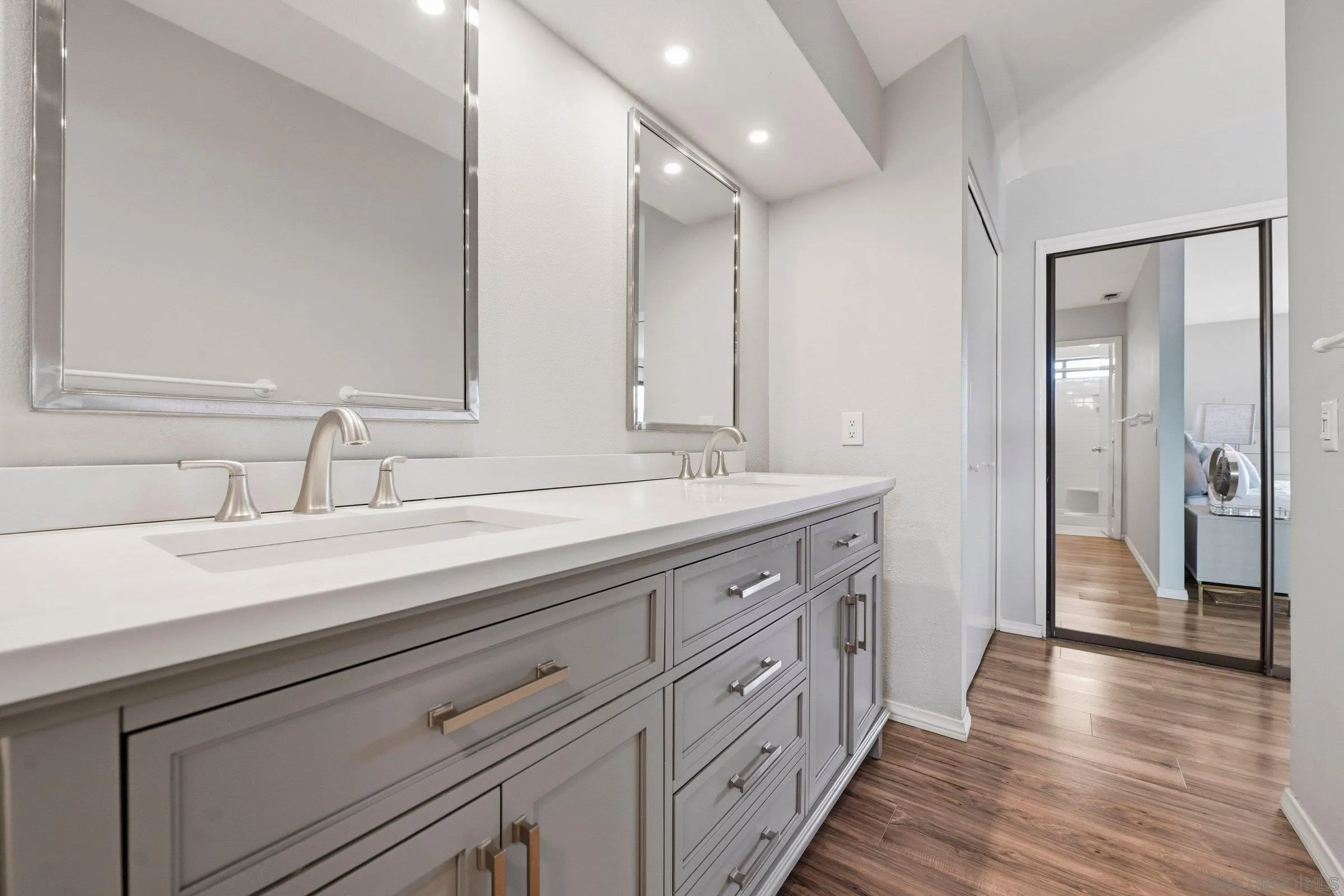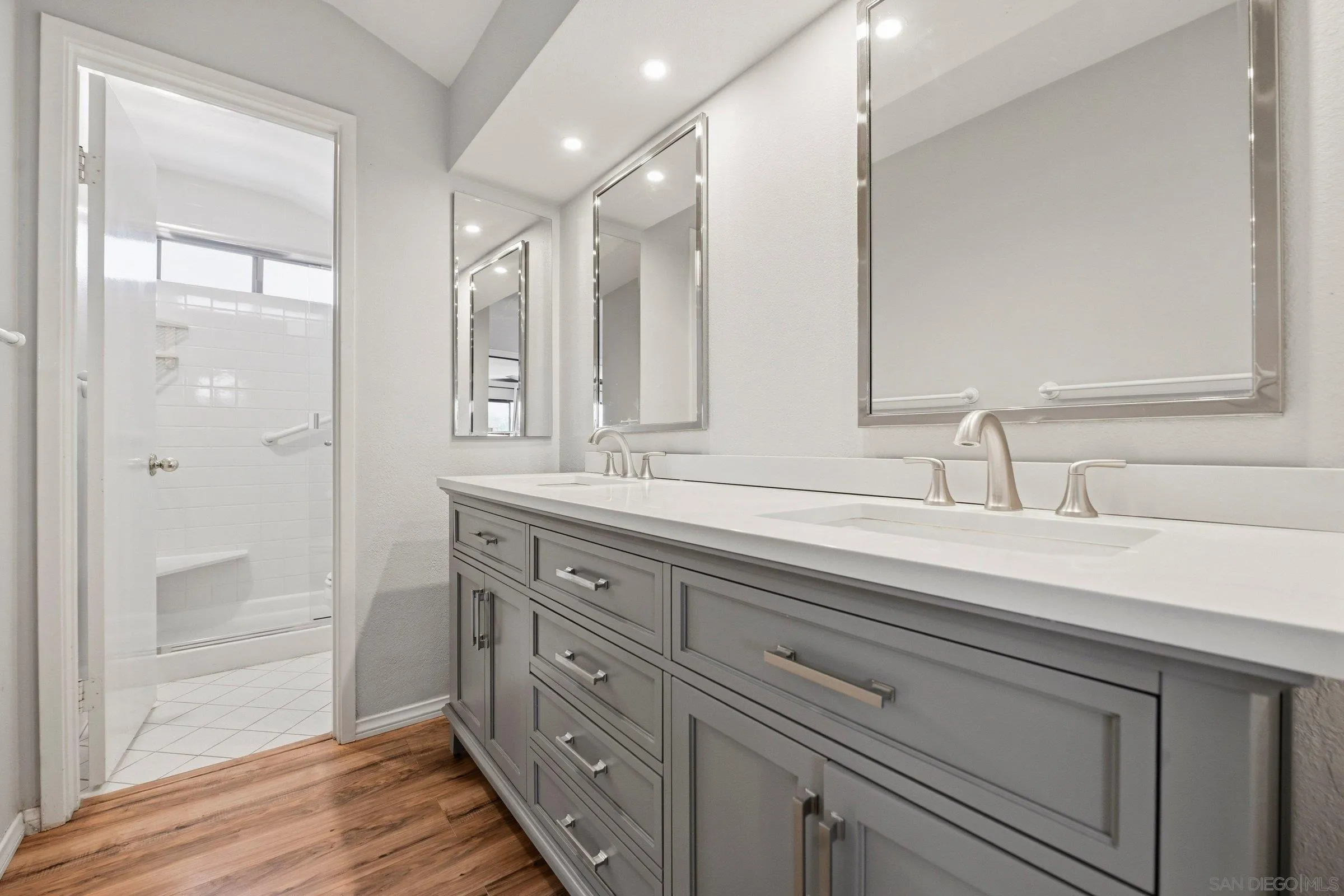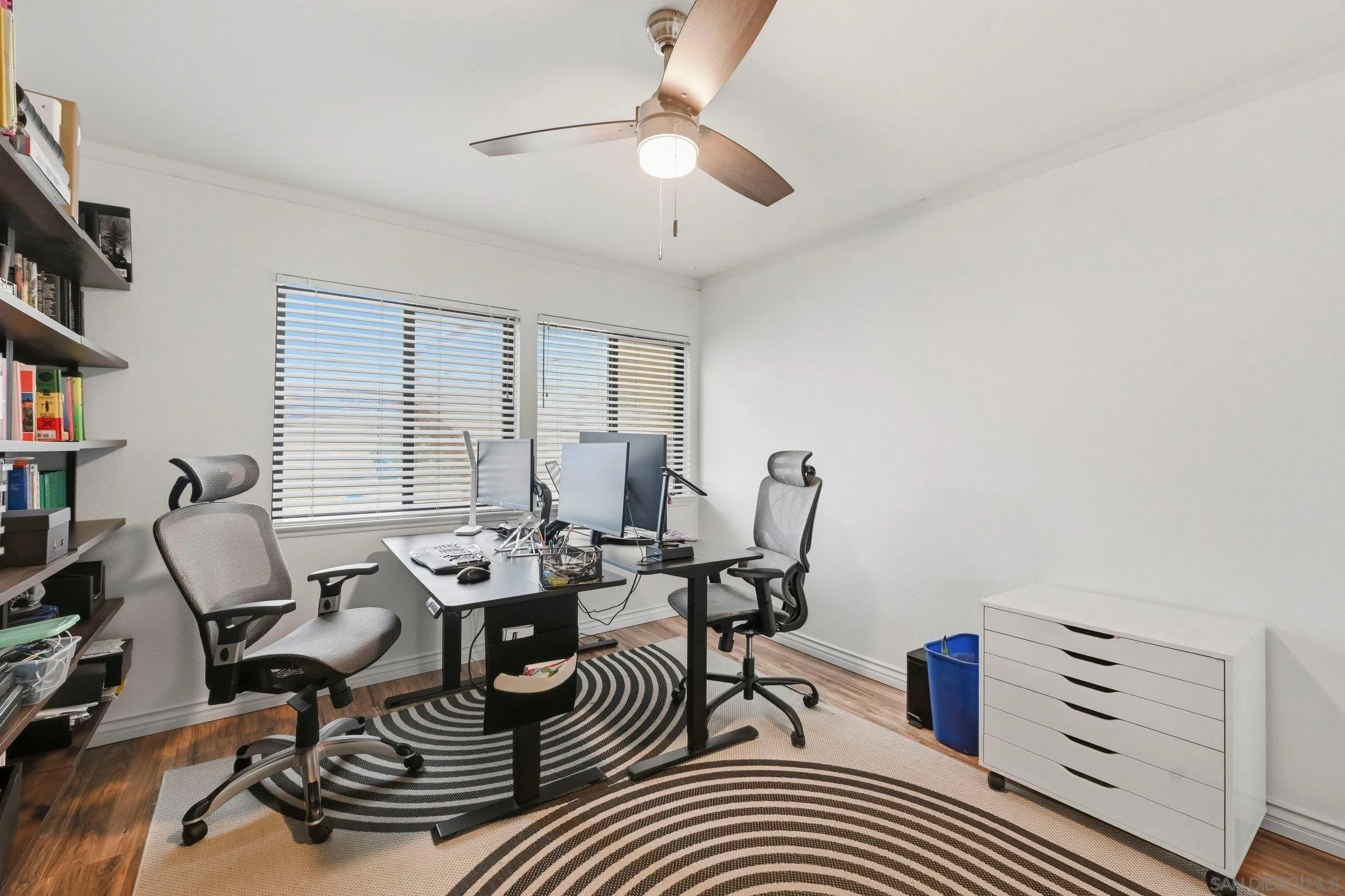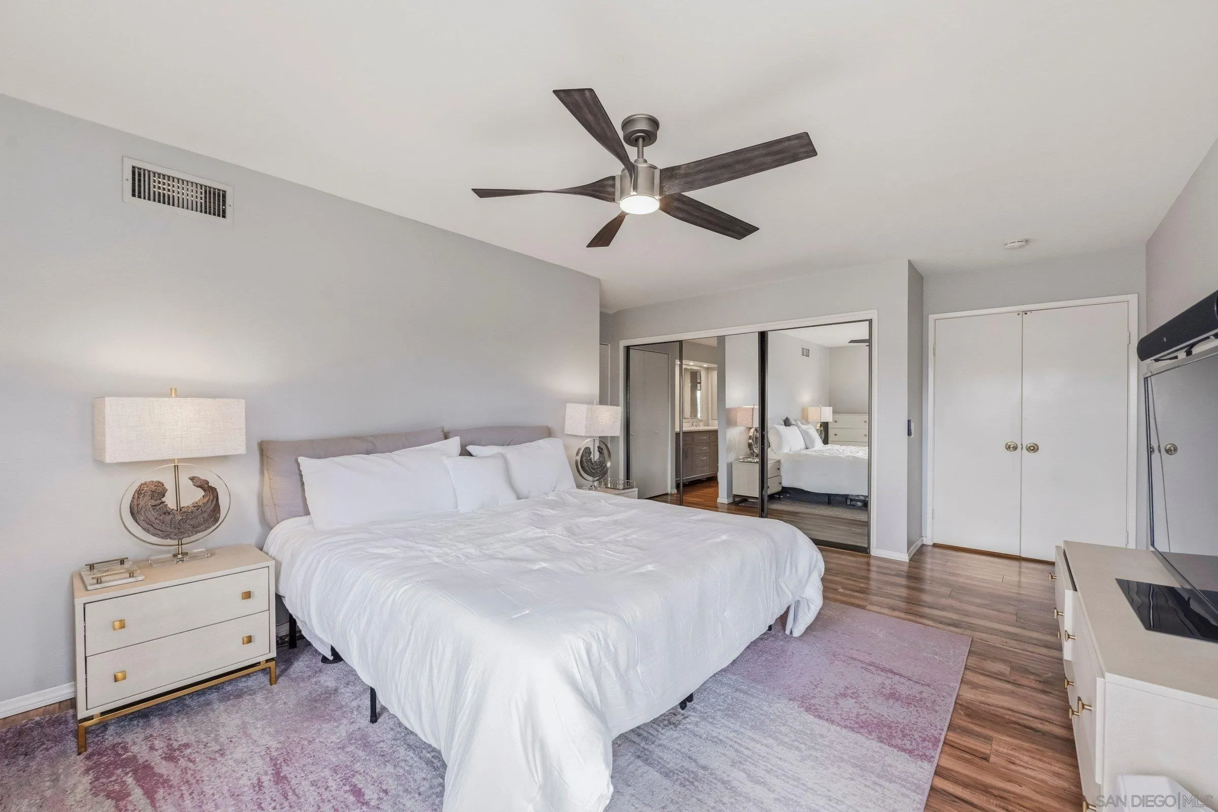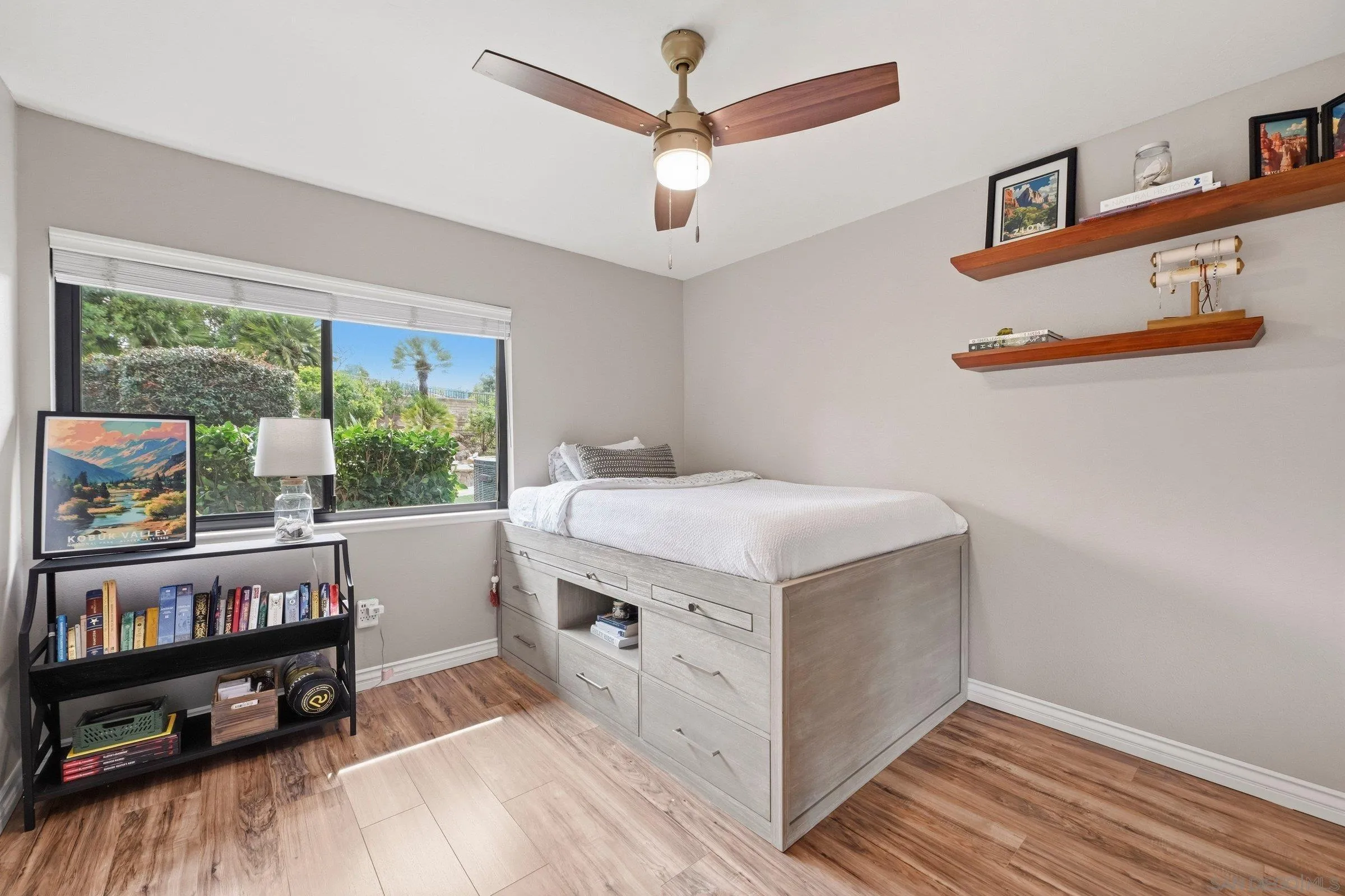 Set within the coveted Stoneridge enclave of Poway, this refined single-story residence offers an elevated blend of comfort, style, and effortless living. Spanning approximately 2,390 square feet, the five-bedroom, three-bathroom home sits on an expansive ~0.3-acre lot, thoughtfully curated to maximize both privacy and scenic surroundings. A seamless flow is complemented by wide-plank laminate flooring, designer lighting, and a beautifully reimagined kitchen that serves as the heart of the home, featuring stainless steel appliances, a dual-drawer dishwasher, and an adjacent bar area ideal for entertaining. Two distinct living spaces, each anchored by its own fireplace, provide inviting settings for both intimate evenings and larger gatherings, while a newly added wet bar with wine refrigeration enhances the home’s entertaining appeal. Everyday functionality meets modern sophistication with an upgraded electrical panel, refreshed closet doors, and a newer washer and dryer.