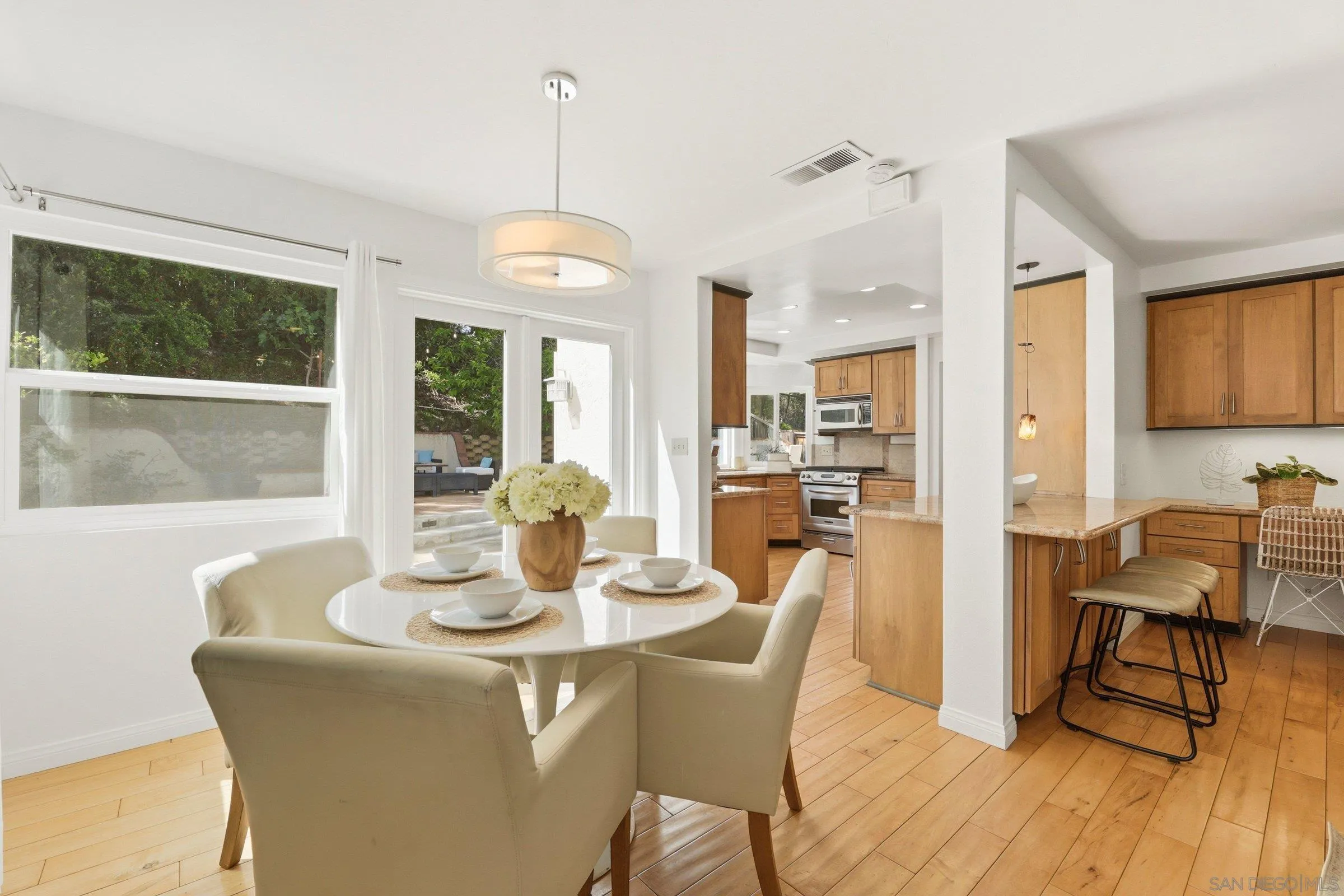 Welcome to this beautifully maintained home in the highly desirable Westwood community of Rancho Bernardo. Featuring a functional layout filled with natural light, soaring ceilings, and hard flooring throughout (no carpet!) The updated kitchen includes granite countertops and stainless steel appliances, while the primary suite provides vaulted ceilings and a updated spa-like bathroom. Energy efficiency upgrades include owned solar system, dual pane windows, and a whole house fan. The private backyard features multiple entertaining areas and a variety of producing fruit trees including fig, lemon, pomegranate, and orange. Residents gain access to the renowned Westwood Club with pools, tennis, pickleball, fitness center, and more.