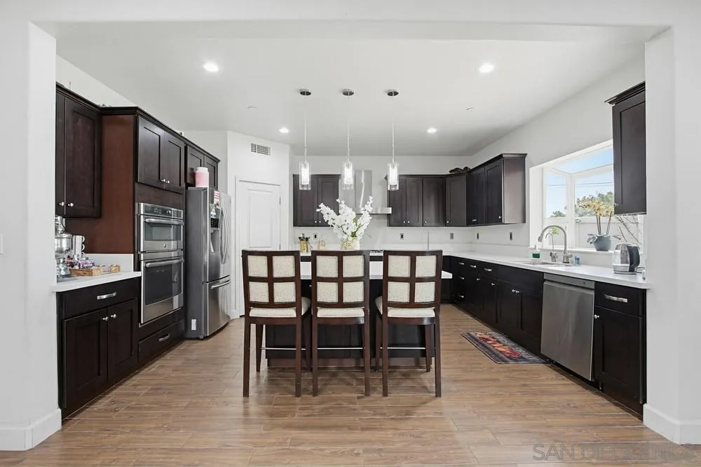 4-bedroom family home in Escondido offers 2,740 sq ft of living space, creating a strong foundation for both comfort and long-term flexibility. With an open living space with high ceilings, giving the home a bright and updated feel while still leaving room to make it your own. Beautiful wood-like flooring throughout the 1st floor. The remodeled kitchen brings a clean, modern touch with granite countertops, oversize walk-in pantry, a separate dining room, and a large family room. There is also a loft with a lot of space upstairs. The Master bedroom has a gorgeous balcony and a large walk-in closet. Full Laundry room. No HOA.