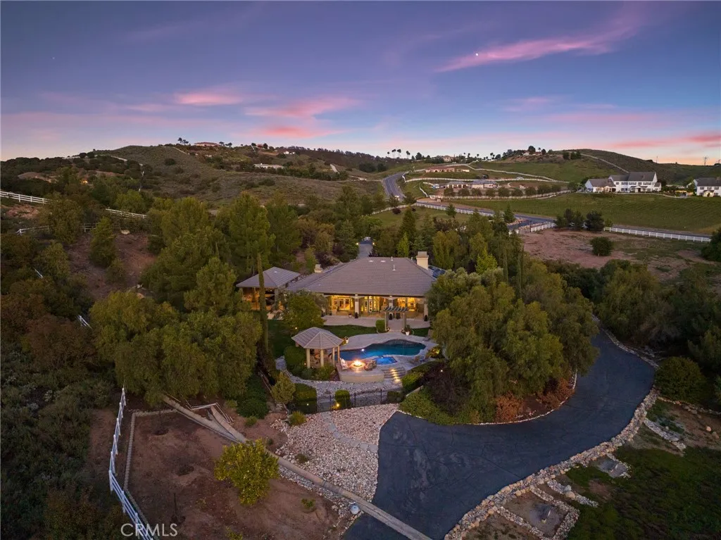 Welcome to 38565 Celine Cove where you get TWO homes on a 5 acre lot A Private La Cresta Estate with Exceptional Craftsmanship! Situated just minutes from the front entry of La Cresta. This exquisite 5-acre estate offers the perfect blend of luxury, functionality, and privacy. Spanning approximately 6,800 square feet, the main residence is a testament to quality construction and thoughtful design. Soaring 12-foot ceilings, crown molding, and commercial-grade glass doors define the expansive interiors, which include 4 spacious bedrooms, 2 fireplaces, and an executive office ideal for working from home. The chefs kitchen is equipped with a Bosch induction cooktop, KitchenAid refrigerator, and reverse osmosis system, making it as functional as it is elegant. The home also boasts 4 air conditioning units, an enclosed sunroom with A/C, and a paid solar system with battery backup for energy efficiency. Step outside into a backyard oasis featuring a pebble tech saltwater pool, outdoor fire pit, and lush landscaping framed by mature treesincluding lemon, orange, pomegranate, pear, and apple. You get TWO 3-car garages, AS WELL AS one enclosed RV parking with generous storage for your oversized collectibles. Let's not forget about the 2,400 square foot guest house, complete with soaring vaulted ceilings, an enclosed sunroom, 2 large bedrooms, a full kitchen with granite counters, and an oversized garage with an enclosed RV bayall constructed to the same exacting standards as the main home. This private estate features an electric gated entry, offering security and seclusion just 10
