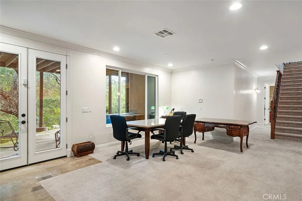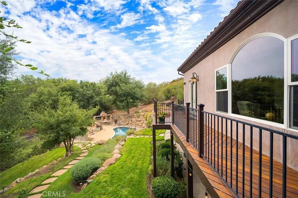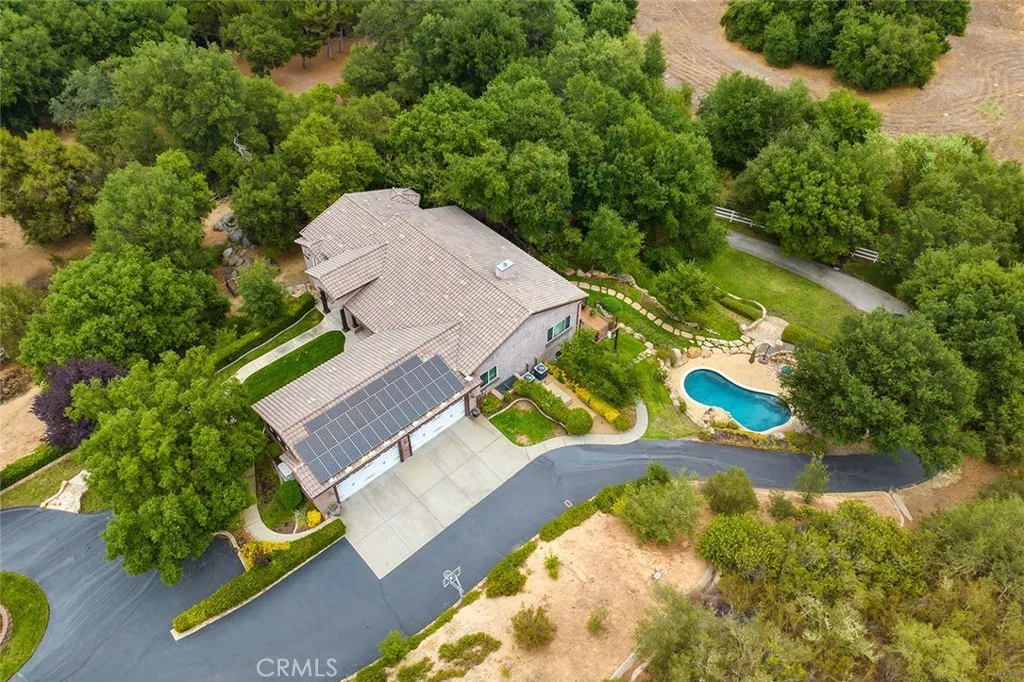 IMPECCABLE & EXTREMELY PRIVATE 6 BEDROOM/6 BATH FIVE-ACRE ESTATE IN THE HEART OF LA CRESTA HIGHLANDS! Enter through the private gate and travel up the long driveway & adorable footbridge to 5282 square feet of luxury living, tucked within a grove of ancient oak trees. This beautifully maintained estate offers single-story living on the main floor and an opportunity for the lower level, with its own entry from the exterior, to act as an expanded part of the home or as a high-end ADU. The main floor offers direct access from the oversized 4-car garage, 12-ft ceilings, chefs kitchen, dining room, family room with a wall of windows and Heatilator fireplace, two guest bedrooms (one currently an office), laundry room & spacious Primary Bedroom with sitting area & ensuite bathroom with soaking tub & steam shower. The lower floor works beautifully for a large family, adult children, or as private space for guests, providing a massive living room, kitchenette, 2 guest bedrooms, bonus room/theater, 2nd laundry, 2nd Primary Suite & walk-out patio with access to the pool. Enjoy endless hours on the deck, an extension of the main floor living space, with its large, covered area, perfect for listening to the waterfall at the pool, birdwatching & even sitting outside during rainstorms. Inside, just steps from the deck is a well-appointed, open kitchen, offering ample space for the largest of gatherings in this enchanting treehouse vibe estate. The grounds offer a wonderland of charm, beauty & adventure, with walk paths through the fruit orchard, sitting areas beneath ancient oaks and reso