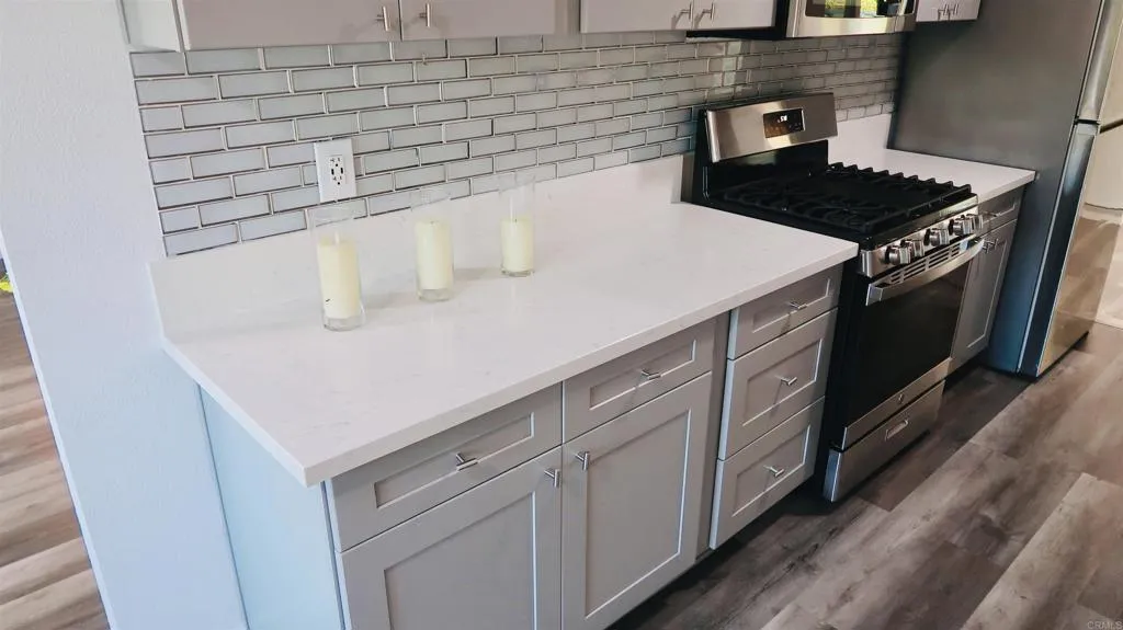 Welcome to beautifully remodeled, 2801 College BLVD in the costal city of Oceanside. Sitting on nearly a 10,000 square foot lot, this freshly painted, (inside-out) single family home, includes 3 bedrooms, 2 full bathrooms, a living room, a family room and a modernized renovated kitchen. It's no mystery that this fully fenced, beautiful Oceanside gem, is located in a highly desired area which is known for it's peace and quiet, bringing more value to the property. As mentioned, this wonderful Oceanside home includes a generous nearly 10,000 square foot lot made up of durable, fully paved concrete surface, providing ample space for outdoor activities, ADUs, plenty of PARKING for all your cars (for up to 10 cars), or potential expansion. The options are endless! Inside the home, features, new vinyl flooring that covers every square footage, bright open layout, upgraded finishes, recessed lights on ceilings, and last but not least the kitchen comes with quartz countertops and NEW stainless steel appliances such as refrigerator, stove, and microwave. The modern updated kitchen offers both style and functionality, making your daily experience as enjoyable as possible.