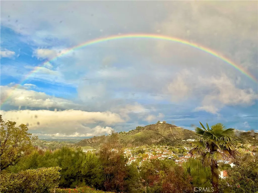 Back on the market due to buyers change of personal/financial circumstance. Welcome to your treasure at the end of the rainbow! This beautifully updated home is located in the prestigious guard-gated community of Calabasas Park Estates. Offering over 3,500 square feet of living space, this 5-bedroom, 5-bathroom home combines timeless elegance with plenty of modern upgrades. Abundant natural light streams through brand-new windows, highlighting soaring ceilings and spacious interiors. The thoughtful floor plan includes a downstairs en-suite bedroom that easily doubles as a private office, creating flexibility for todays lifestyle. Designed for both everyday living and entertaining, the home features a formal living room, dining room, and an expansive great room with seamless flow to the backyard and breathtaking panoramic views. The chefs kitchen is equipped with a large center island, generous counter space, Viking Professional appliances, a large Sub-Zero refrigerator, and a conveniently located breakfast nook. Traveling through the elegantly curved staircase, discover four well-appointed bedrooms, including a luxurious primary suite with serene views, a spa-like bathroom, and ample closet space. A second upstairs en-suite offers privacy, while two additional bedrooms share a convenient large bathroom. The backyard is an entertainers haven with a sparkling pool, spa, patio, and multiple areas for gatherings or quiet enjoyment. Additional highlights include a separate laundry room and a spacious three-car garage. Nestled on a tranquil cul-de-sac, this home blends comfort an