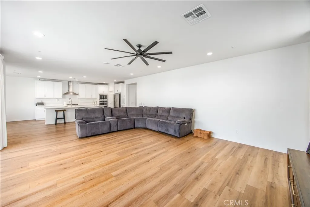 Welcome to 30542 Gonsalez, a beautifully upgraded home located in the highly sought-after Braverde community of Menifee. This spacious 5-bedroom, 4-bathroom residence offers 2,935 square feet of thoughtfully designed living space on a generous 6,050 square foot lot, combining modern luxury with practical function to support your indoor-outdoor lifestyle. This home showcases a number of major builder upgrades, including PAID-OFF SOLAR, an extended living room with a triple-panel sliding glass door, and elegant maple-painted shaker cabinetry throughout the kitchen and bathrooms. The chef-inspired kitchen features quartz countertops, a quartz undermount sink, and is pre-wired for two pendant lights over the island, as well as a dining chandelier and entryway chandelier. All bedrooms are prewired for ceiling fans, offering comfort and efficiency throughout. The open-concept main level is enhanced with luxury vinyl plank flooring, upgraded baseboards, and an abundance of natural light that flows seamlessly through the expansive living and dining areas. The home features a main-level master suite, offering a private retreat complete with its own spa-like ensuite bathroomideal for multigenerational living or added privacy. A separate guest bathroom is also located downstairs for added convenience. Upstairs, youll find an oversized loft, perfect as an additional living space, game room, home office, etc. plus three additional bedrooms and a full laundry room with custom cabinetry. The home also includes an oversized garage, offering plenty of room for extra storage, a home gym set