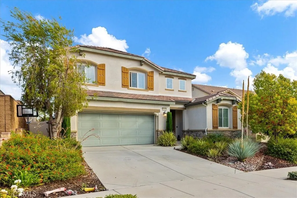 Beautiful Pool & Spa Home in the Heart of Wildomar! Welcome to this stunning two-story, four-bedroom, three-bath home offering 2,389 sq. ft. of comfortable living space. Built in 2015 and ideally located near Inland Valley Hospital, this home combines modern style with everyday functionality. One bedroom and full bathroom are conveniently located downstairsperfect for guests or multigenerational living. The spacious kitchen is the heart of the home, featuring an extended center island with bar seating, sleek quartz countertops, stainless steel appliances, a double oven, six-burner cooktop, built-in microwave, and an industrial-style stainless steel sink. The open-concept layout flows seamlessly into the family room, where youll find built-in shelving, a cozy gas fireplace, and beautiful plantation shutters. Upstairs, the primary suite is a good Size and the Primary Bathroom offers a relaxing retreat with dual sinks, a vanity area, a soaking tub, separate walk-in shower, large walk-in closet, and private water closet. Two additional bedrooms are upstairs with a Full Bathroom with a Tub-in-shower. Also Upstairs is a Private Laundry Room, close to most of the bedrooms and has a large storage closet for linens, towels and supplies. An open loft provides the perfect space for a play area, home office, or media room. Step outside to your private backyard oasis featuring a sparkling pool and spa, Alumawood patio cover with a fan, and plenty of room for entertaining or relaxing year-round. The 2-Car Garage is being used as a gym currently. There is an EV Charger for electric vehicl