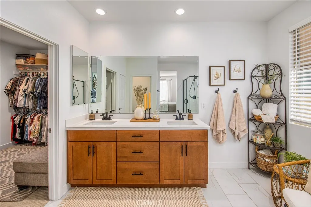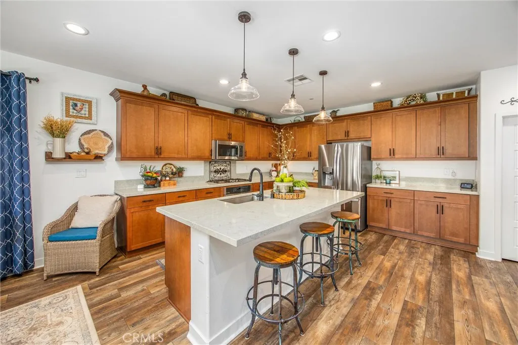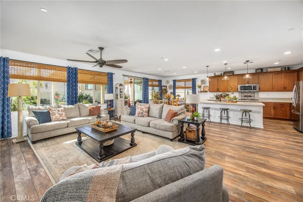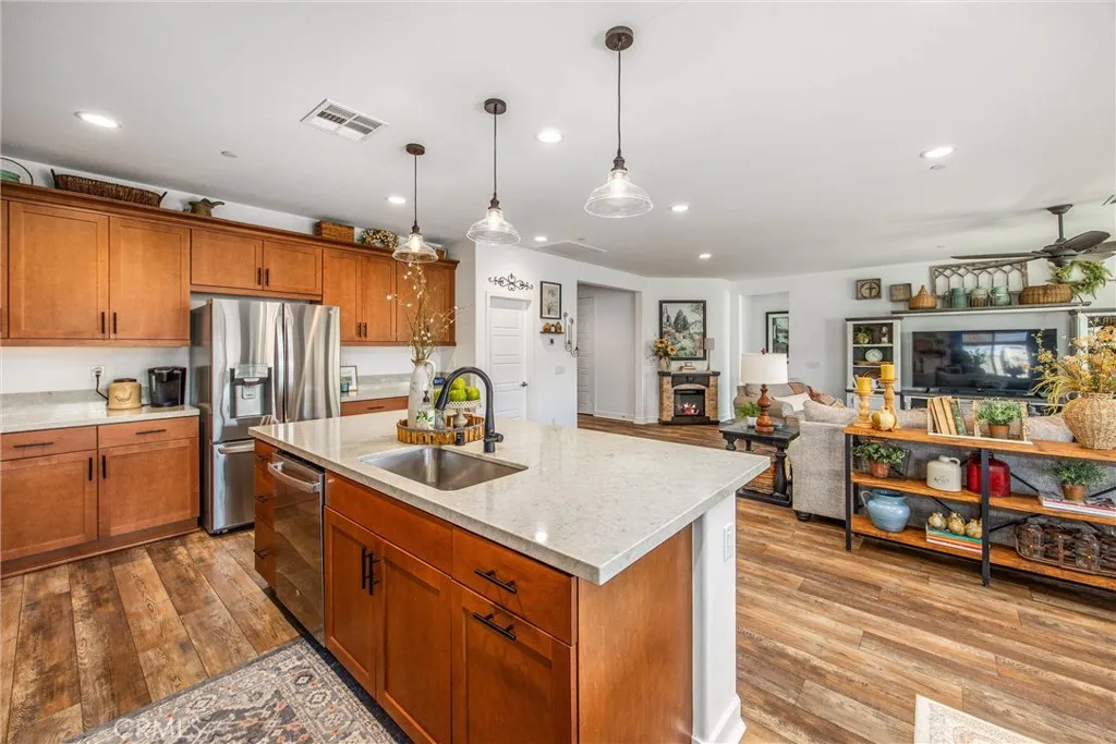 Welcome Home!!! Newer Built luxury large home in Atwell community of Banning, this home features Open Concept floor plan with luxury items such as Modern kitchen with quartz countertops, stainless steel appliances, kitchen opens to a large family room with light filtered windows, waterproof laminate flooring, 4 large bedrooms including a primary bedroom with upgraded custom barn door, walk in closet & primary bathroom with walk in shower & double vanity with quarts countertops. The other bedrooms can be used for offices, guest bedrooms, playrooms, etc. This home comes with the following upgrades: luxury laminate vinyl waterproof flooring, barber carpets in all bedrooms, each bedroom is pre-wired for ceiling fans, kitchen and all bathrooms have upgraded quarts countertops, upgraded stainless steel kitchen sink, extra electric outlets in the Garage, upgraded extra tall toilets, upgraded hardware and faucets, throughout the house, alum wood patio cover, upgraded large concrete patio area and backyard landscape, turf plants and rock. The 3 car Tandem Garage offers plenty of space for cars and storage. This home is a "smart home" pre wired for security Ring system, wi-fi etc. The Solar is leased. Buyers must assume Solar lease. Bring your buyers with confidence! Buyers and their Agents to do their due diligence to their contractual satisfaction. Welcome home!