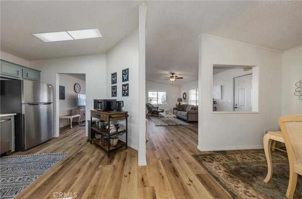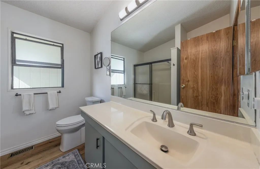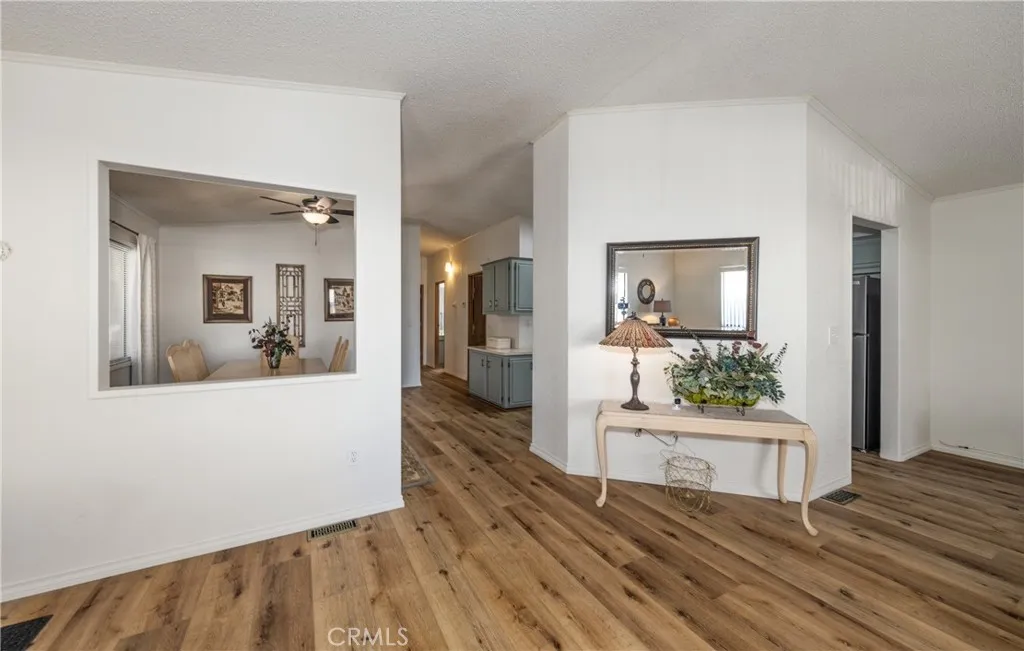 WELCOME HOME TO THE FOOTHILLS OF HEMET....THIS IS THE FINEST SENIOR COMMUNITY IN HEMET...55 +....Presenting a 2 bedroom 2 bathroom home with lots of upgrades...Recently remodeled with Luxury Vinyl Plank flooring...stunning !!! The kitchen is adorable and the cabinets have been painted a subtle green....very much on todays trend...Stainless Steel appliances and a bamboo shade for the window with the cutest pendant light..There is a spacious laundry room with lots of extra storage...The bedrooms are quite spacious and the primary has a walk in closet to die for ...This home also features a bonus room off the kitchen which is presently being used as a dining area but would also serve as a great office space...There is also new security screen doors..new overhead lights in the kitchen...modern new lights in the primary bath...new ceiling fans throughout...popcorn removed in guest bedroom and new toilets...new locks on all the doors with one key for all...the front and back yards are maintenance free and the patio has privacy shades and is a great spot for entertaining as well...the park itself is gated 24/7 for your peace of mind and the park is just fabulous with every kind of activity imaginable...do not miss this one ...this is priced to sell right now !!!
