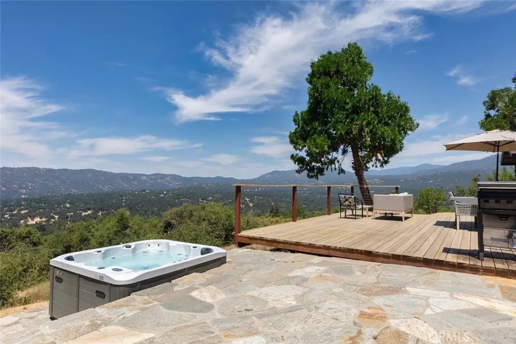 Panoramic Sierra Views & Modern Mountain Comfort! Amazing views and privacy highlight this recently renovated mountain home, ideally located just minutes from Oakhurst, Bass Lake, and Yosemites South Gate. Perched on a scenic ridge, the property captures nearly full views of the Sierra Nevada and surrounding foothills, offering a rare combination of seclusion and accessibility. Inside, the spacious open-concept floor plan features a bright living area with large windows that frame the sweeping mountain vistas. The updated kitchen includes modern appliances, ample counter space, and custom cabinetryperfect for everyday living or hosting gatherings. The home offers three comfortable bedrooms and two full bathrooms, including a private primary suite with its own bath and soaking tub. Central heating and air conditioning ensure year-round comfort, while the separate laundry area adds everyday convenience. Step outside to enjoy a peaceful outdoor living space complete with a private patio, hot tub, BBQ area, and plenty of room for entertaining. Whether relaxing under the stars or taking in the sunrise over the mountains, this property offers a truly serene lifestyle setting.