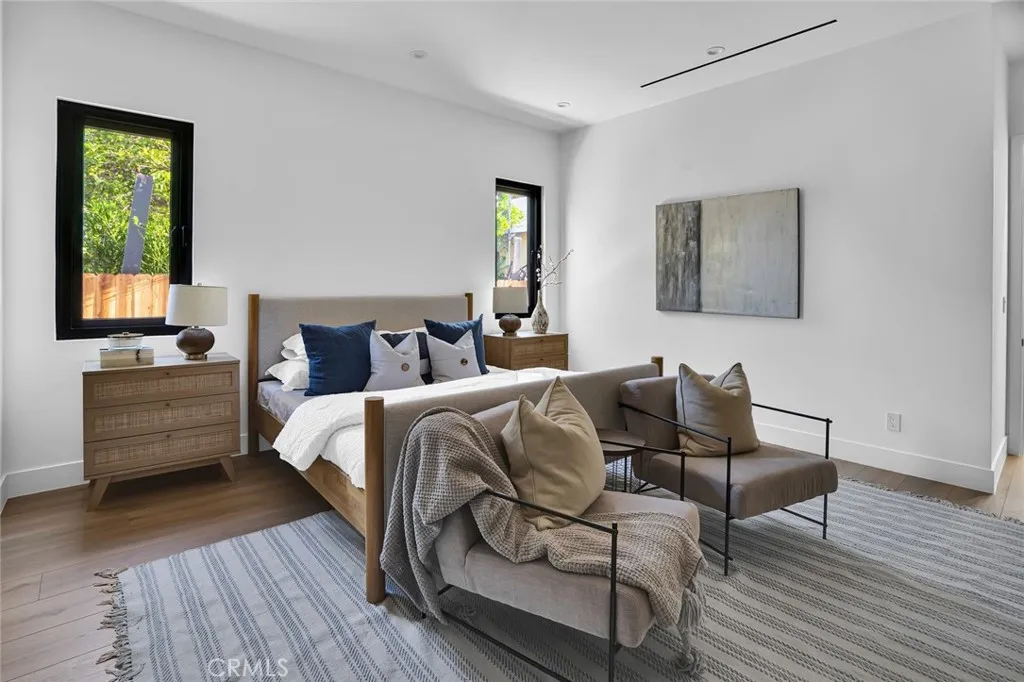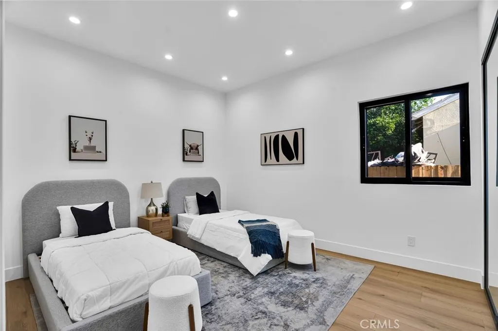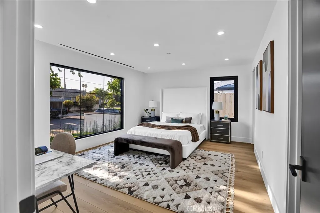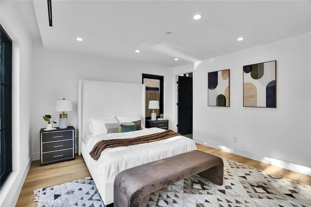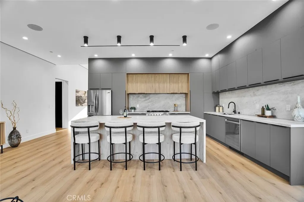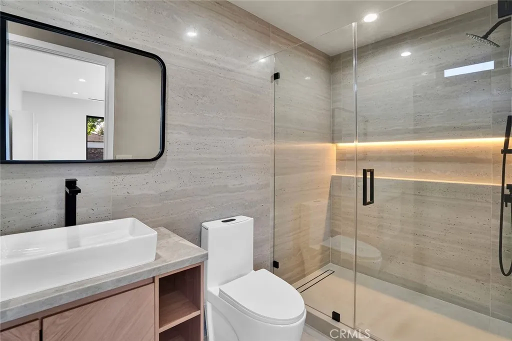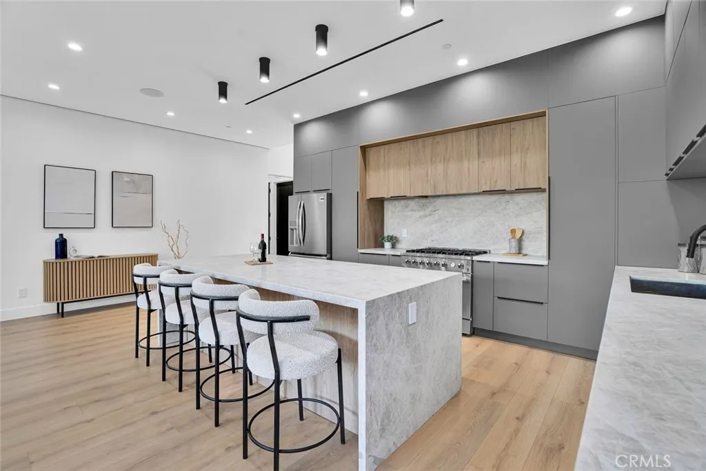 Come see this beautifully almost brand new- 3-bedroom, 3.5-bathroom pool home in Encino, offering 2,107 sq. ft. of stylish living space. The impressive 12-foot-high entry ceiling and pivot front door create a grand first impression, while high ceilings of 10 feet, throughout the house, make the home feel open and spacious. The layout includes a generous junior suite and a large primary master bedroom with a stunning walk-in closet and fireplace. The brand-new chefs kitchen has plenty of cabinets, brand new appliances and features Taj Mahal natural stone countertops and backsplash, opening to the dining and family room for effortless entertaining. Recessed lighting throughout the house, family room has a modern fireplace. Large sliding doors flood the space with natural light and connect you to the backyard retreat. Outside, enjoy the sparkling Baja-style pool with mini pebble plaster finish, surrounded by drought-resistant landscaping and synthetic grass for year-round beauty and low maintenance. This modern home has been thoughtfully upgraded with new heating and air conditioning, updated electrical and plumbing, and built-in sound speakers in the living area. This beautiful home has a laundry room with ample cabinets. There is a solar panel system. Located close to shops, parks, and quick access to the 101 Freeway, this home blends convenience with luxurious California living.