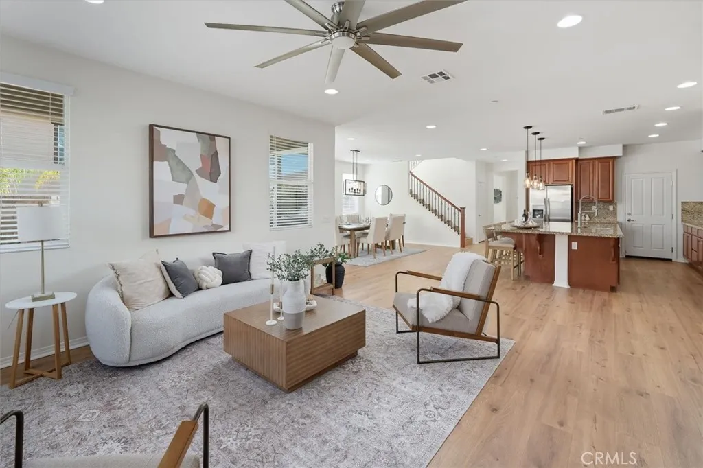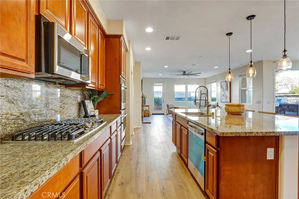 Exquisite Upgraded Valencia Home located on a Large Lot in the Gated West Hills Community! This Model like Designer Style home Boasts 5 Large Bedrooms (One Downstairs), Meticulous Master Suite, 3 Bathrooms (One Downstairs), approx. 3,400 sq. ft. on approx. 7,400 Sq. Ft. Lot. As you enter this Magnificent home you are drawn to the Stunning Upgraded Flooring & Cathedral Ceilings. Large Living Room (Could be Office), Fabulous Family Room with Romantic Fireplace & Ceiling Fan overlooking the Private Backyard, Formal Dining Area with Gorgeous Chandelier & Sliding Door to the Serene Backyard, Gourmet Chef's Kitchen with Stainless Steel Appliances including New Double Ovens, Refrigerator, Upgraded Cabinets, Granite Counters, Huge Granite Island with Built-In Storage underneath, Sitting Area & Pendant Lights, Large Walk-In Pantry. Perfect for any Celebrity Chef! As you Meander up the Spectacular Staircase with the Wood & Wrought Iron Banister you are drawn to the Huge Loft (Could be 6th Bedroom), Luxurious Master Suite with step-up separate sitting area & Stunning Mountain Views! Lavish Master Bathroom with Granite Counters, Oval Tub, Large Walk-In Shower, Dual Sinks, Vanity and Two Large Walk-In Closets. Feels like you are at a Bellagio Spa! Large Secondary Bedrooms (One with Walk-In Closet). Features include: Spectacular New Flooring, New Double Oven & Refrigerator, Recessed Lighting, Upstairs Laundry Room with Upgraded Cabinets, Sink, Large Walk-In Linen Closet, Ceiling Fans & Professionally Painted. Entertainers Backyard with Covered Patio, Custom BBQ, Enchanting Fireplace & Ma