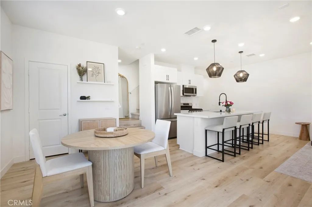 Welcome to the beautifully designed town home located in the Hudson gated community of Placentia. Newly built at the end of 2022 with an inviting open floor plan that features upgraded luxury vinyl flooring, high ceiling, recessed lighting throughout the home, dual-pane windows and sliding door that leads to the balcony, perfect for outdoor sitting, a walk-in pantry to store snacks, kitchen island with quartz countertop equipped with a single bowl sink and tiled marble back splash offering a clean aesthetic to the white shaker cabinetry matching cohesively with powder room. This turn-key home was thoughtfully built for energy efficiency featuring solar panels, a tank-less water heater, enhanced insulation. Enjoy the convenience of smart home features - garage opener, connected thermostat and smart door. Located on the third floor you'll find all generous sized bedrooms, laundry area and a linen closet. Primary bedroom features a walk-in closet, en suite bathroom includes a step in shower with glass, tiled flooring, quartz counter top. Two-car garage, direct entry with plenty of space for storage. Community offers, BBQ area, fire-pit to hang out, Playground for tot lot, Basketball Court and Dog Park. Conveniently located near shopping centers, restaurants, 91/55/57 freeways and walking distance from schools.
