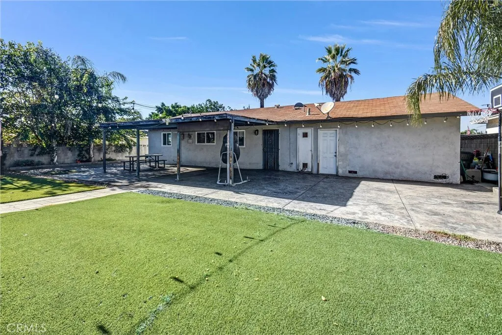 Located with easy access to the 10 Freeway, here you have a wonderful 4 Bedroom and 2 bath HOME with 2 car garage, plus a 50-foot driveway, potentially big enough for RV or extra Parking! You'll love the updated flooring throughout the home as well as the Upgraded Kitchen. Updated windows. Mature palm trees on site. The home is good size and offers a HUGE backyard with covered patio, perfect for entertaining guests or relaxing! There's even a small GOLF putting green! Schools, restaurants, and shopping are all nearby! The Montclair PLAZA is delightful and nearby as well. This home is READY for you! Come see it today!