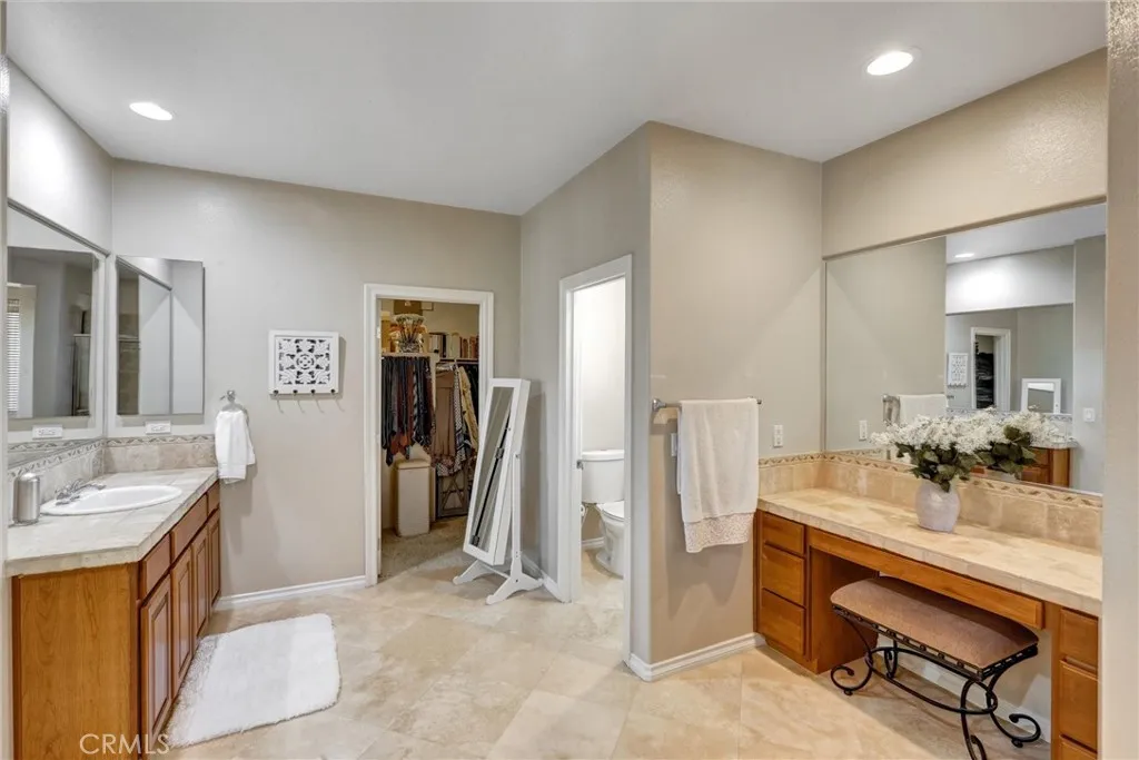 PRICE REDUCED!!! WEST SIDE MURRIETA BEAUTY! An extraordinary opportunity to own this rare over 4,000 sq.ft., 6-bedroom, 4.5-bath pool home, perfectly situated on nearly a third of an acre in Murrietas exclusive west side. Built by Pulte Homes in 2005, this residence blends luxury, comfort, and entertainment with an impressive list of upgrades. Main Level Highlights: Grand vaulted entry and formal living room with fireplace, Elegant formal dining room with coffered ceiling, Fully remodeled island kitchen featuring beautiful stone (dolomite) countertops, refinished cabinetry, stainless steel appliances, deep stainless sink, and walk-in pantry, Spacious family room with fireplace, custom built-in cabinetry, and large-screen TV niche, Office/bedroom with French doors to the patio plus a second bedroom, both served by a full bath with walk-in shower, Guest powder room, Laundry room with built-in sink and cabinets. Upstairs Retreat: Private primary suite with spa-like bath: dual vanities, walk-in shower, oval soaking tub, makeup vanity, and expansive walk-in closet, Large loft suitable for a pool table, Three generous sized bedrooms: one with private full bath, two sharing a Jack & Jill bath, and Private home theater with screen, projector, surround sound, and reclining seats. Outdoor Paradise: An entertainers dream with solar or gas-heated pool & spa, firepit, volleyball court, putting greens, and a large covered patio with built-in BBQ, fridge, and panoramic views of the hills and neighboring Skyes Ranch Park. Additional Features: Travertine flooring downstairs, crown molding,
