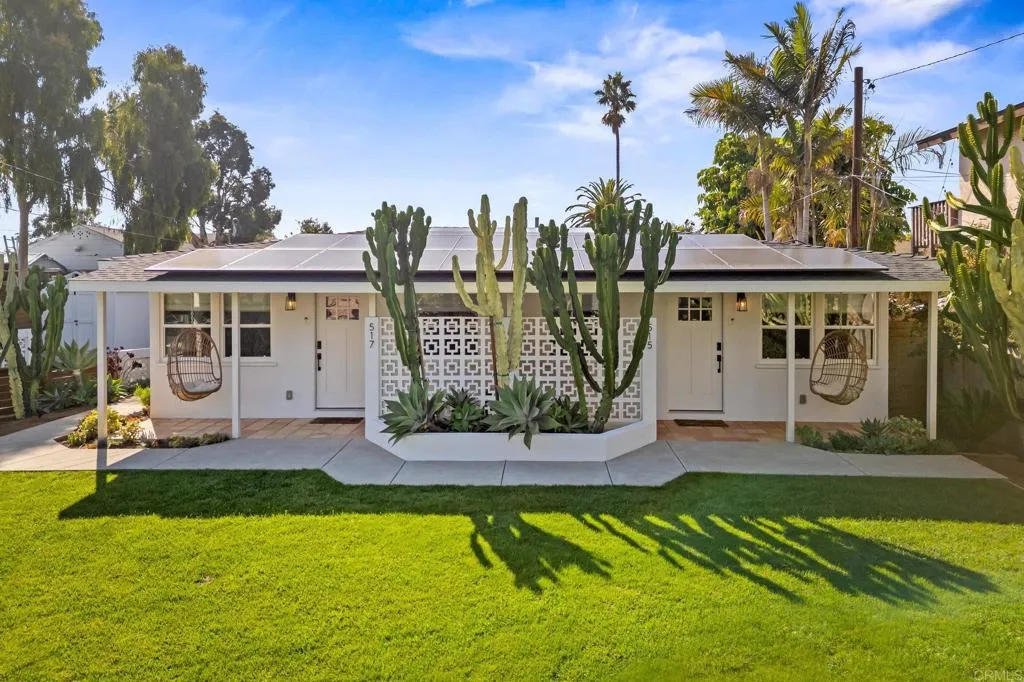 A short distance to Oceanside's beautiful beaches! 1950's vintage charm meets modern coastal design with a relaxed surf vibe. This impeccably remodeled, fully furnished duplex blends boutique-hotel finishes with laid-back surf-town livingideal for owner-occupant, 2-unit furnished rental, or extended-stay beach retreat. Move-in ready from day one, in pristine turn-key condition, this property has been remodeled down to the studs. Kitchens have been designed to entertain with large kitchen islands, high-end Bertazzoni appliances and quartz countertops. Both units feature their own dedicated backyard oasis with hot tub, BBQ, dining area, fire pit, and string lighting. Each unit has a fully owned solar system that has kept them at nearly zero electrical costs annually. New roof, new fencing, new Saltillo tile floors, new tankless water heaters, new insulation throughout (including interior walls), new split ductless HVAC in both units. Smart-home controls for music, alarms, lights, room darkening blinds, and weather updates. Two separate electric meters and gas meters. Convenient off-street parking and plenty of street parking available. Located in the heart of Oceanside, Californiaeasy quick access to the beach, pier, dining, coffee shops, and harbor; close to I-5 and train station.