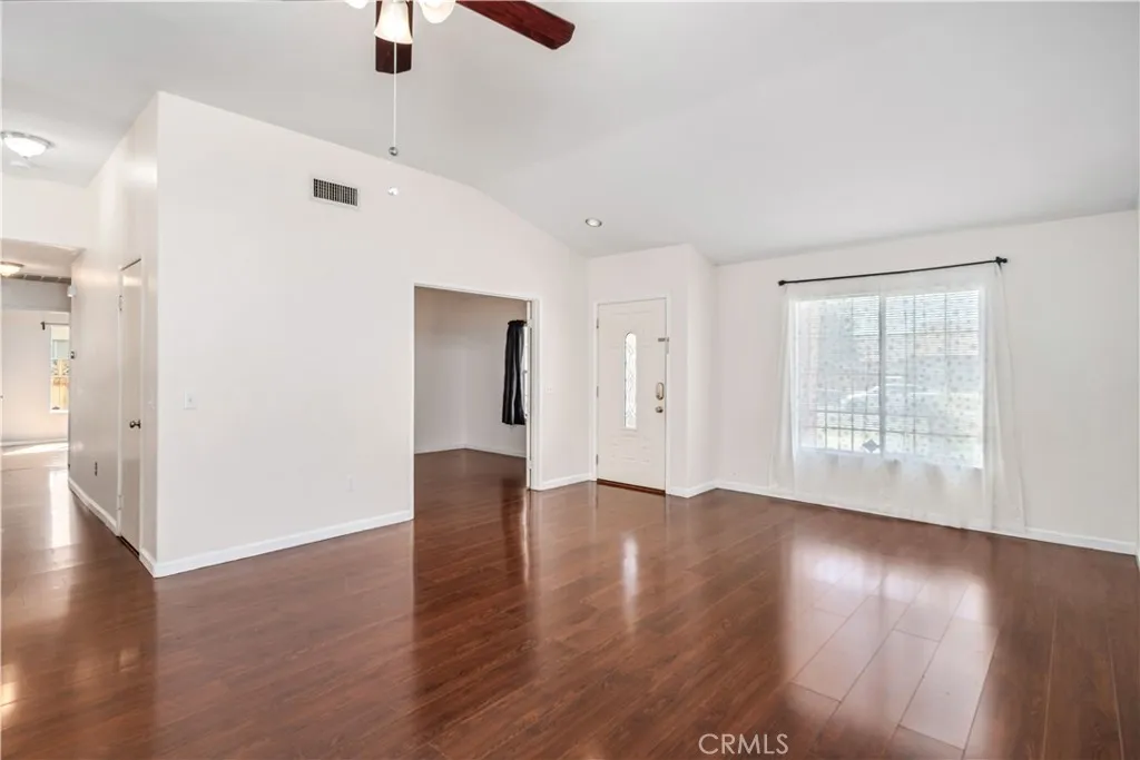 Dont wait on this one its the kind of home that just feels good the moment you walk in. Light-filled, comfortable, thoughtfully updated, and truly move-in ready. If youve been hoping to settle in before the holidays, you can this home is ready for a quick close. This single-story layout has over 1,600 sq. ft. of open, inviting space with 4 bedrooms and 2 bathrooms, designed for everyday ease and effortless hosting. The kitchen is the heart of the home, with granite countertops, stainless steel appliances, and plenty of storage. It opens right into both the family room (with a cozy fireplace for movie nights) and the formal living space (perfect for gatherings). The high ceilings and laminate wood floors make everything feel bright, airy, and welcoming. The primary suite is your own calming retreat spacious, private, and complete with a walk-in closet and a beautifully updated bathroom with dual sinks. Youll also appreciate the indoor laundry room, updated bathrooms, and energy-saving solar system that helps keep monthly costs lower. Plus all appliances are included, making move-in even easier. Step outside and youll find a backyard youll truly enjoy spending time in. Mature landscaping, lush planter beds, a covered patio for shaded afternoons, and a paved side yard ready for BBQs, play space, gardening, or pets. Its peaceful, private, and easy to maintain. An attached two-car garage, upgraded fencing, and a cared-for feeling throughout complete the picture. Homes like this dont come around often especially ones this clean and ready to go. Come see it, feel it, and imag