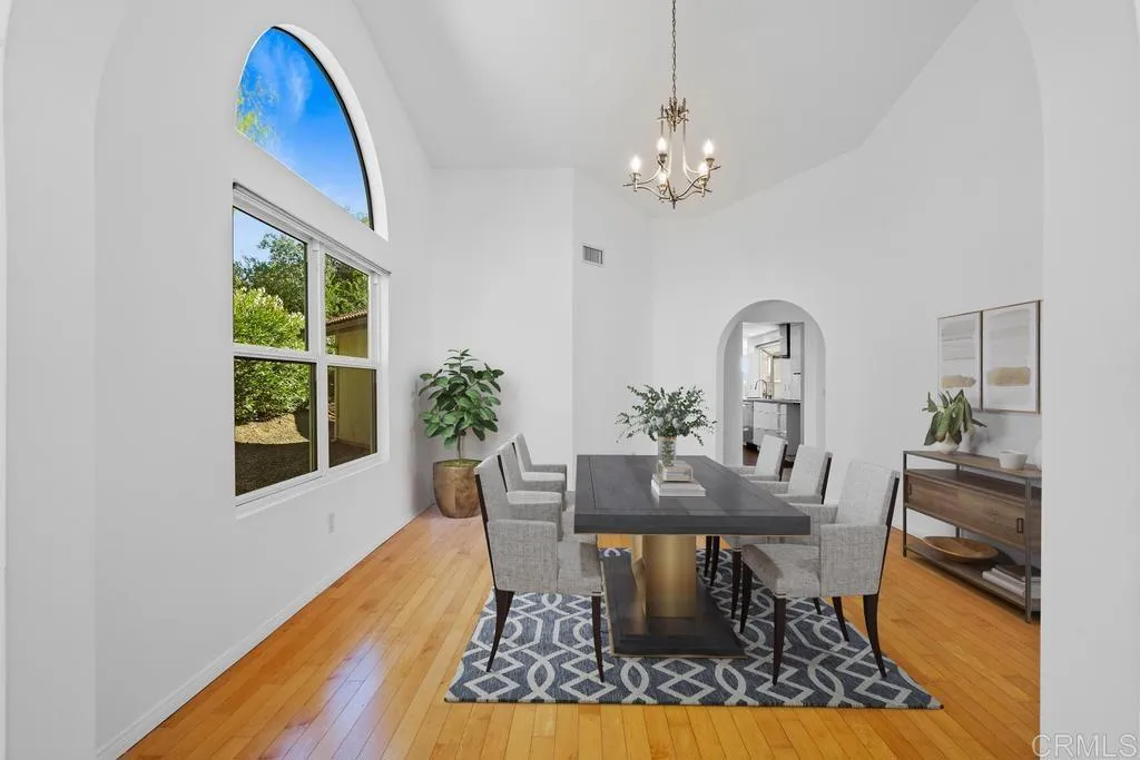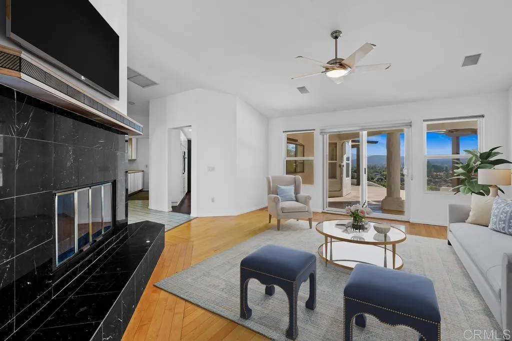 Welcome to this 4-bedroom, 2.5-bathroom, single-level home with a clean contemporary design and offering over 3,000 sq. ft. of living space, located in the in the heart of San Diego County, in the highly desired Ramona neighborhood of the San Diego Country Estates. The kitchen features quartz countertops, stainless steel appliances, a spring water filtration system, as well as plenty of storage and workspace. The primary suite includes a fireplace, large walk-in closet, jacuzzi soaking tub, and separate shower. A split bedroom floor plan provides privacy, with three additional bedroomsall on the opposite wing of the primary suite. Formal areas of the home include a unique octagonal living space with large windows that fill the home with natural light and a large formal dining room. The family room features vaulted ceilings and a fireplace, creating a comfortable and open atmosphere. Step outside to your fully fenced private backyard retreat, complete with a sparkling pool, covered patio, and shaded seating area. The backyard also includes a collection of fruit trees, featuring peach, pear, pomegranate, orange and apricot. Enjoy panoramic views of Eagle Peak, the Laguna Mountains, and Cuyamaca Mountains, often snow-capped in winter. The property backs to open space, offering privacy in a stunning natural setting. Additional features include a spacious indoor laundry room with deep sink, folding station, and ample storage in the 2-car garage. If youre searching for a single-story home for sale in Ramona, CA with mountain views, contemporary design, and a pool, this home offer