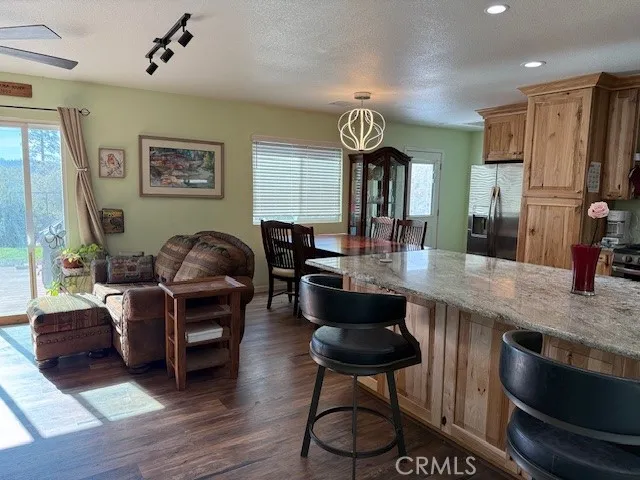 39468 Summit Dr Oakhurst Ca, this may be the custom dream home you've been waiting for, 4 bedrooms 3 Baths 1488 sq ft all on one level as it should be. Completely remodeled from the ground up in 2022. Designed to be an STR but grand enough to be someone's weekend get-a-way or primary residence. Two Primary suites one on each end of the house with their own insuite baths. The custom kitchen with its luxurious hickory cabinets flows into the dining and living rooms to form a cozy great room. There are four doors leading to the new wood deck and back yard so navigating to and from the house is quite easy, great for when you have a large party. The granite breakfast bar can easily seat four or five people or sit at the oversized dining room table that's included, no elbowing necessay. The NEW High Efficiency HVAC will keep the inside temperature right where you want it and the beautiful wood burning stove will help with those cool winter evenings. The remodeling included Hickory cabinets with upgraded granite countertops, new wood laminate, tile & carpet flooring new plumbing, electrical wiring & switches, sheetrock, state of the art ceiling fans and intergrated Led lighting throughout. Attic and whole house fans were installed as well. The front yard is designed to be as maintenance free as possible and the back yard is protected by an almost invisable black wire fence to keep the deer away from all the roses and plants we so much adored, and they look so beautiful next to the white picket fence. There's a 12' x 22' workshop/storage shed in the back with electricity and window
