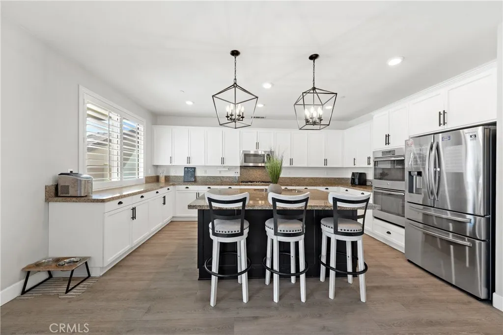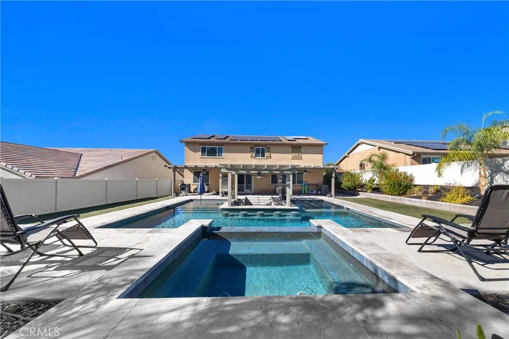 All Furniture is included - POOL HOME** Just reduced Below Market .. TURNKEY- This stunning modern farmhouse, featuring $265,000 in pool upgrades, offers a private backyard oasis complete with a sparkling pool, two waterfalls, a splash pad, and in-water seating beneath an elegant pergola. Spanning 3,404 square feet, the home includes five bedrooms, three bathrooms, and a cozy loft. The interior boasts luxurious vinyl plank flooring and a chef's kitchen equipped with high-end appliances and a double oven. The spacious living room, highlighted by a gas fireplace, opens to a covered patio where you can enjoy the tranquil sounds of the waterfalls. Ideally situated near the 15 and 215 freeways, as well as various dining options and two Target stores, this property perfectly balances luxury and convenience. Opportunities like this are raredont miss your chance to experience resort-style living every day! Schedule your private tour today before this dream home is gone!