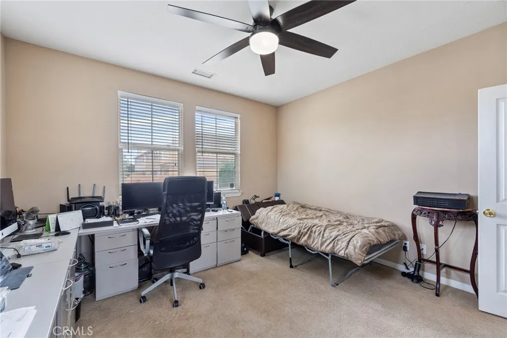 Elegant and UPGRADED 5-BEDROOM, 3-BATH EASTVALE RESIDENCE offering nearly 3,807 SQ FT OF LIVING SPACE in a HIGHLY DESIRABLE NEIGHBORHOOD. A GRAND TWO-STORY ENTRY opens to FORMAL LIVING AND DINING AREAS, an OVERSIZED FAMILY ROOM WITH FIREPLACE, and a GOURMET KITCHEN with GRANITE COUNTERS, CENTER ISLAND, STAINLESS-STEEL APPLIANCES, and ABUNDANT CABINETRY. The MAIN-LEVEL BEDROOM AND BATH provide ideal MULTI-GENERATIONAL flexibility. Upstairs features a SPACIOUS LOFT, a DEDICATED UPSTAIRS OFFICE/HOME WORKSPACE a RARE benefit not commonly found even in newer homes and a LUXURIOUS PRIMARY SUITE with DUAL WALK-IN CLOSETS and a SPA-INSPIRED BATH with SOAKING TUB and SEPARATE SHOWER. On the main level, enjoy an ADDITIONAL BUILT-IN OFFICE DESK FEATURE WITHIN THE FAMILY ROOM perfect for remote work, homework, household management, or last-minute projects a thoughtful upgrade that maximizes comfort, productivity, and lifestyle convenience. Together, these TWO WORKSPACES create a TRUE BEST-OF-BOTH-WORLDS EXPERIENCE HOME, FAMILY, AND BUSINESS FUNCTIONALITY offering FAR MORE VERSATILITY THAN MOST HOMES IN THE AREA, INCLUDING NEW CONSTRUCTION. MAJOR UPGRADES INCLUDE: REAL HARDWOOD AND MARBLE FLOORING on the first level ($26,000 INVESTMENT) REINFORCED TURF FRONT YARD ($6,000) FULLY PURCHASED $45,000 SOLAR SYSTEM (buyer assumes approx. $253/mo SELLER REPORTS SURPLUS ENERGY CREDITS) FRESH INTERIOR PAINT ADDED HEAT PUMP FOR ENHANCED COOLING EFFICIENCY ?? THIS PROPERTY SITS ON ONE OF THE LARGER LOTS IN THE AREA SIGNIFICANTLY LARGER THAN MOST NEWER CONSTRUCTION HOMES PROVIDING SPAC