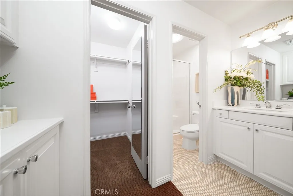 Beautiful Corner Lot Home with Dual Primary Suites in Woodbury, one of the most desirable communities in Irvine. This stunning corner lot home radiates pride of ownership throughout and offers an exceptional blend of comfort, style, and quality upgrades. Featuring two primary suites, each complete with full showers and a solar tube in the primary bath with built in night light and spacious walk-in closets. This thoughtfully remodeled residence provides the perfect balance of luxury and functionality with spectacular views of the corner lot from almost every room. The first floor showcases beautiful Acacia hardwood flooring, while the second floor is complimented by soft Berber carpet. The remodeled kitchen is a true showpiece, featuring quartz countertops with a full-height backsplash, high-gloss white laminate cabinets with premium hardware, LED under-cabinet lighting with adjustable color settings, and modern conveniences such as a pull-out trash system, Super Susan tray storage, double knife drawer, new Kohler pull-down gooseneck faucet, Kraus stainless steel sink with rounded corners, and high end Samsung Bespoke dishwasher, refrigerator and microwave. A large walk-in pantry is located just off the kitchen, offering ample storage space. Additional home features include ceiling fans, window treatments that include Bass wood shutters, roller shades and woven blinds. as well as PEX piping throughout, new water heater, Brondell bidet systems in both primary suites with Kohler showerheads, Kohler hardware throughout the home including all faucets with metal drains and downst