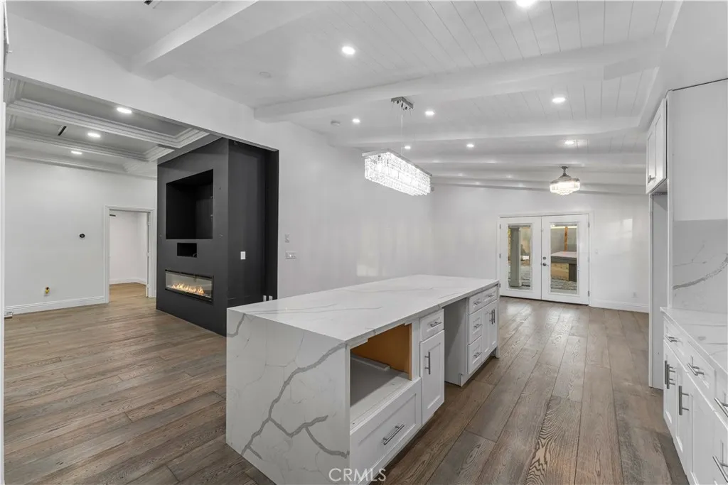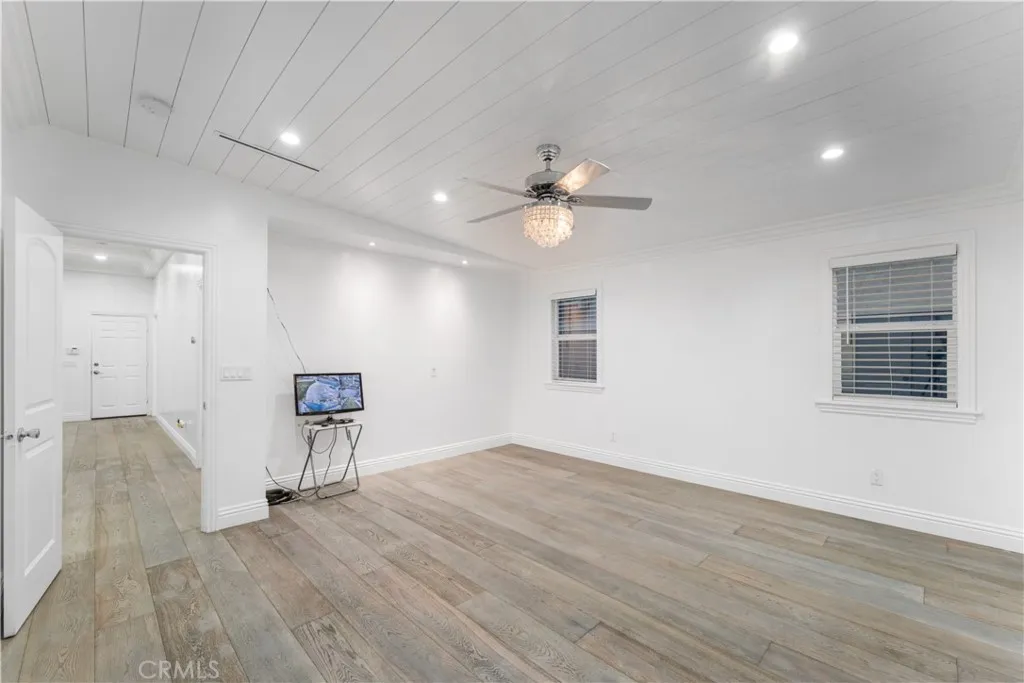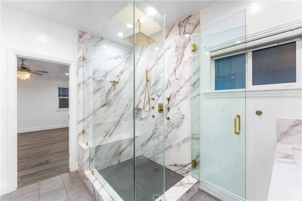 Welcome to 6418 Ringsdale Court, a true standout nestled at the end of a quiet cul-de-sac in one of Bakersfields most desirable neighborhoods. Sitting on an expansive 10,454 sq ft lot, this stunning 3-bedroom, 2-bath home has been transformed with over 85% premium upgrades, offering the kind of detail and craftsmanship you rarely see outside of luxury estates. From the moment you arrive, youll notice the striking curb appeal with IPE hardwood accenting the front exterior and a $3,500 custom oversized entry door that makes a lasting first impression. Inside, be greeted by engineered cedar wood flooring, elegant crown molding, and coffered ceilings that create an air of sophistication throughout. The open-concept kitchen is a dream come true, boasting Calacatta quartz countertops, a large island with waterfall edges, high-end appliances, and a walk-in pantry with a frosted glass door. Seamless design and luxury finishes continue into the living area, complete with built-in surround sound wiringalso extended to the master suite and covered patioperfect for entertaining or creating your own immersive media experience. The spacious primary suite features dual vanities, a spa-inspired layout, and abundant natural light. Additional highlights include dual-pane windows (installed in 2021), new copper plumbing, linear vents for modern elegance, a state-of-the-art AC system (installed in 2021), and a fully fire-resistant exterior clad in James Hardie siding for peace of mind. Outside, enjoy the low-maintenance raised deck, a pristine vinyl pool (installed just 3 years ago), and RV ac