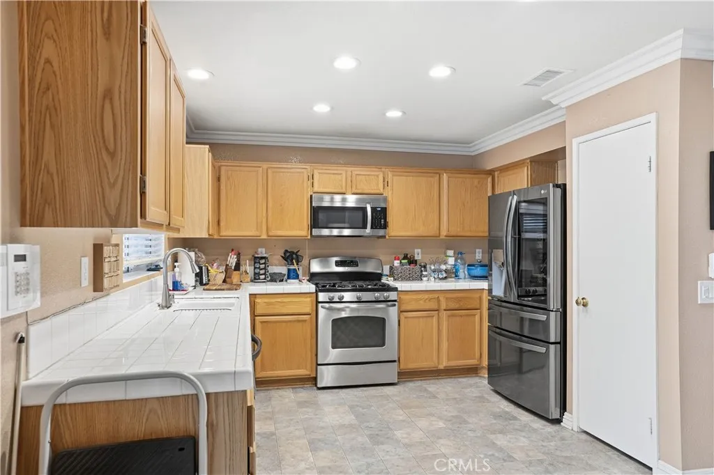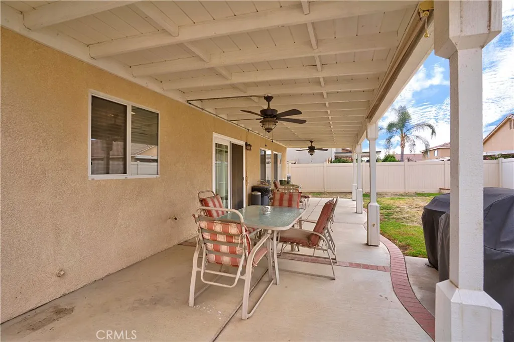BACK ON THE MARKET JUST IN TIME FOR CHRISTMAS!!! Buyers loss is your gain!!! Welcome to this beautifully maintained two-story home offering 4-bedrooms, 2.5-bathrooms, and 2,486 square feet of comfortable living space in the heart of West Hemet. Conveniently located near parks, schools, shopping, and dining, this property features low taxes and no HOA, making it an exceptional value. Step inside to a warm and inviting layout that includes a spacious family room with a cozy fireplace, a formal living room, a dedicated dining area, a charming kitchenette, convenient indoor laundry room, and a half-bathroom. Upstairs, a versatile loft provides the perfect space for a home office, playroom, or additional lounge area. The remodeled primary bathroom offers dual granite vanities, a beautiful walk-in shower and a walk-in closet, and the updated guest bathroom highlights modern finishes with gorgeous tile shower/tub combo, granite dual vanities, and custom wood wall details. Additional highlights include crown molding, vinyl fencing, large, covered patio, room for a pool, and an energy-efficient HVAC system that is just 5 years new. The drought resistant landscaping with succulents and DG is beautifully illuminated at night. With its prime location, thoughtful upgrades, and ample living space, this West Hemet beauty is move-in ready and waiting to welcome you home.
