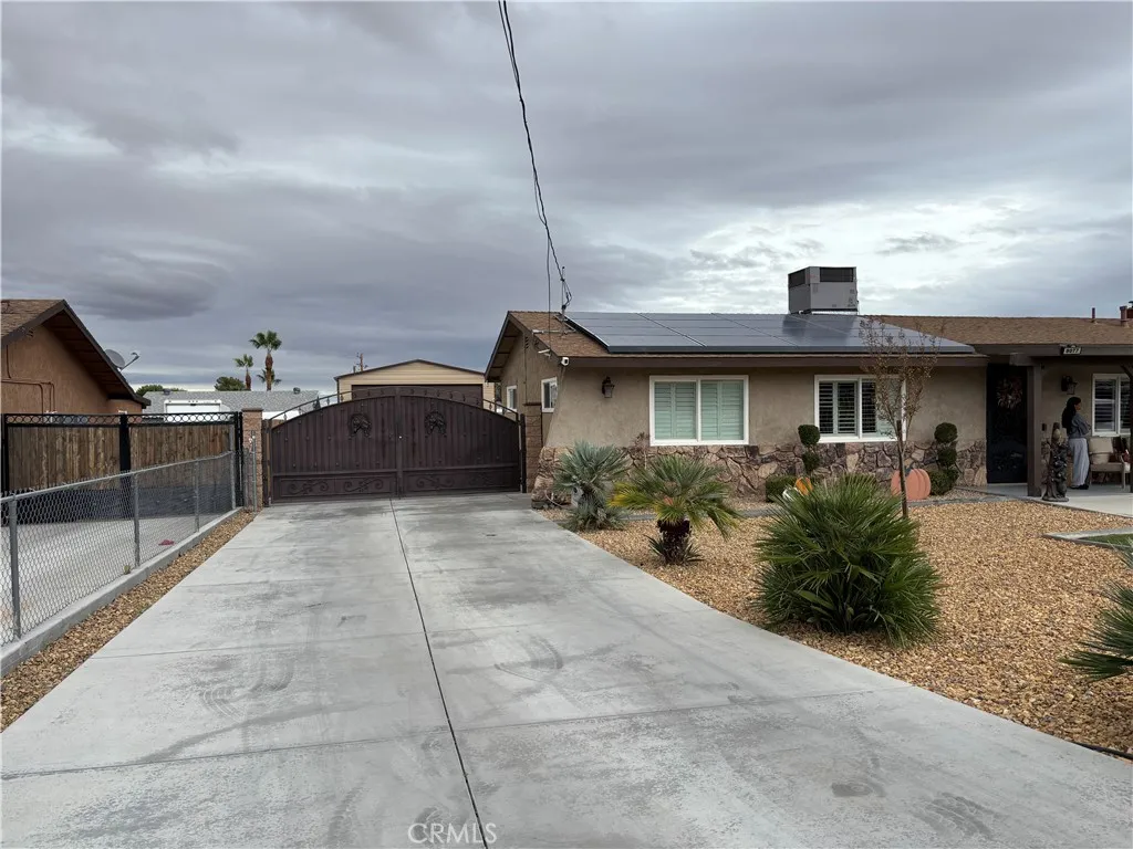 THE ULTIMATE TURNKEY RETREAT: Welcome to a truly exceptional, newly remodeled residence where modern luxury meets unparalleled functionality and privacy. Secured by block and iron fencing with automatic gates, this property is a private oasis, perfect for both luxurious living and serious hobbies. The entire home has been renovated for a flawless, turnkey experience. Inside, enjoy a brand-new state of the art kitchen and a beautifully remodeled bathroom featuring contemporary fixtures and finishes. Throughout the main living areas, the aesthetic is clean and bright thanks to newly installed recessed lighting and elegant light controlling new shutters. Enjoy the convenience of automated lighting and entry door lock. Step outside into your private 'destination-style' retreat with a stunning pool as the centerpiece, boasting full automation from your cellphone app to control your swimming experience. The backyard is designed for low maintenance with extensive concrete and automatic sprinklers. A major highlight for the hobbyist or collector is the huge, detached metal garage, providing substantial secure space for vehicles, workshop or storage and there's also a wood framed shed for additional storage. This property delivers a rare combination of luxurious, automated comfort and security