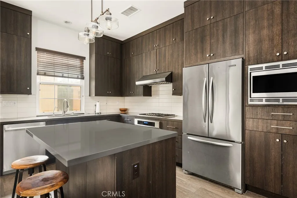 Contemporary Detached Home in Cypress Village with Flexible Floorplan & Designer Finishes Welcome to Strawberry Grove, a quiet and desirable street nestled in Irvines coveted Cypress Villagea master-planned community known for its tree-lined streets, resort-style amenities, and unmatched lifestyle convenience. This beautifully upgraded, detached 3-bedroom, 3.5-bathroom home offers exceptional flexibility, privacy, and style. A rare first-floor bedroom suite includes a full en-suite bath and a fully permitted custom closet additionperfect for guests, in-laws, or a private home office. With generous storage throughout and three full levels of living space, this home is thoughtfully designed for comfort and room to grow. Step into the main living area where wood-look tile flooring, soaring ceilings, and abundant natural light create an airy, welcoming ambiance. The bespoke designer kitchen is the heart of the home, boasting full-height walnut-stained cabinetry, quartz countertops, and a spacious island ideal for casual meals or entertaining. Enjoy seamless indoor-outdoor living with a private balcony just off the great roomperfect for soaking up the Orange County sunshine and taking in scenic neighborhood views. Upstairs, a dual-primary suite layout offers privacy and luxury, with both bedrooms featuring en-suite baths and expansive closets. Live just moments from Cypress Grove Park, scenic trails, sparkling pools, and top-tier amenities. This home is also located within the award-winning Irvine Unified School District and minutes from premier shopping, dining, and entertainm