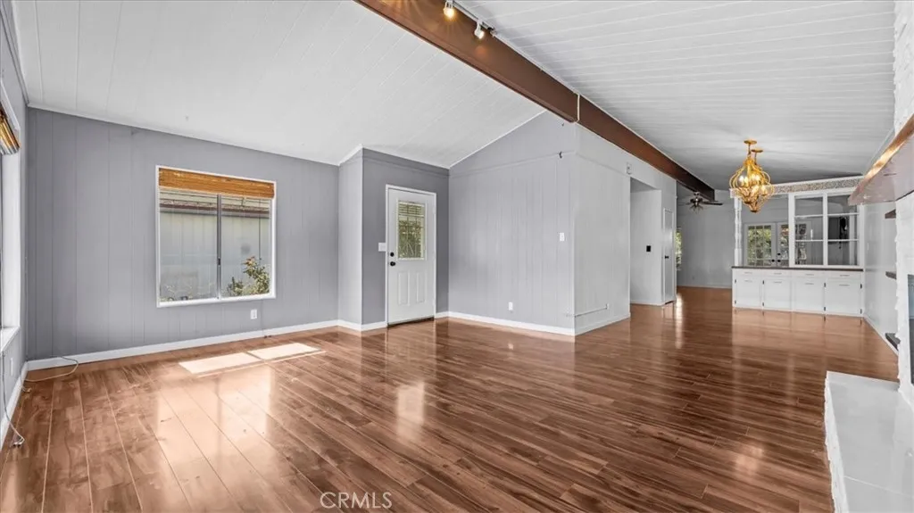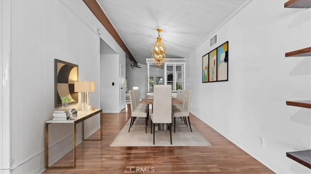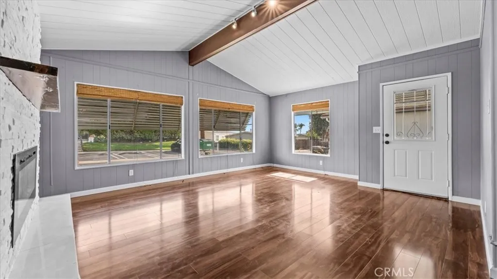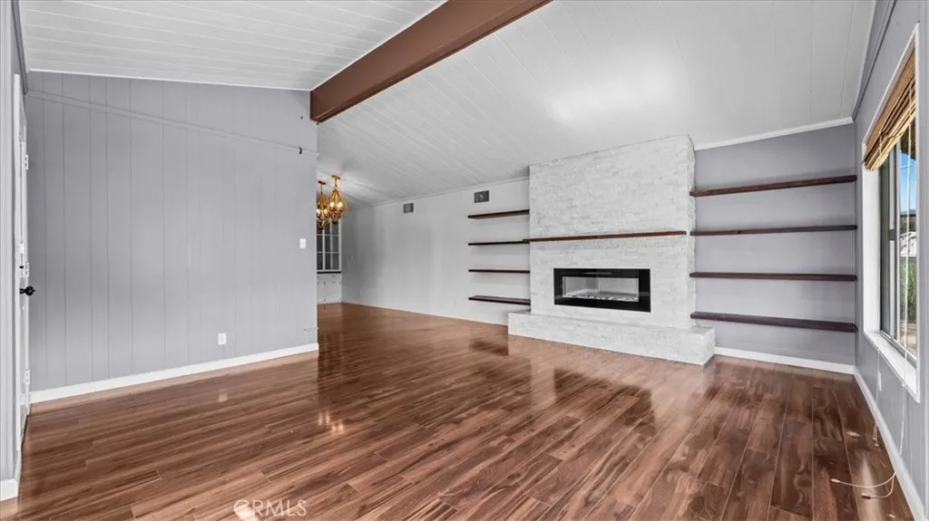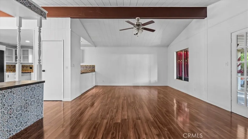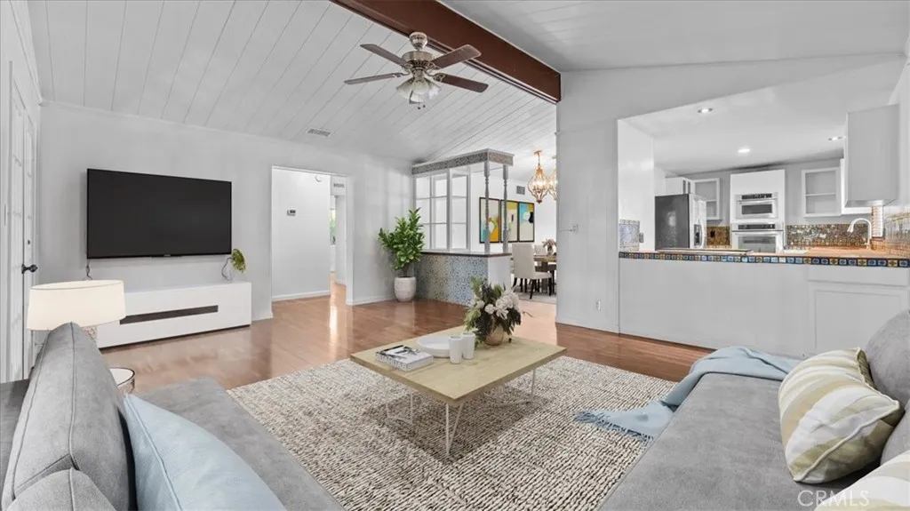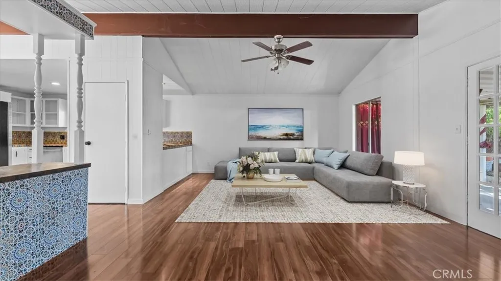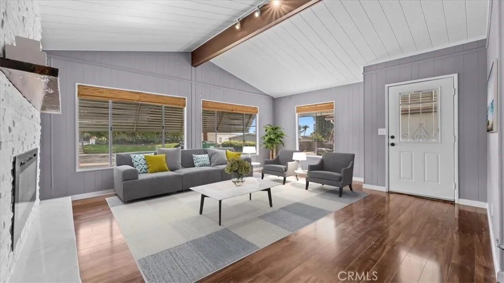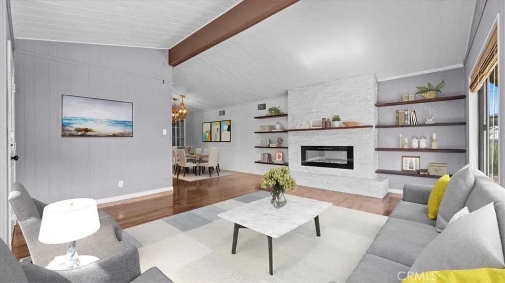 Step into a modern retreat thoughtfully designed for the way you live today. This tastefully updated ranch-style residence offers approximately 1,700 square feet of single-level living space, featuring two generous bedrooms and two pristine bathrooms. Enter into a luminous living room anchored by an electric fireplace and sleek floating shelves, a stylish yet inviting space for both relaxation and entertaining. Vaulted ceilings with exposed beam details draw the eye upward, while rich luxury vinyl flooring flows seamlessly throughout, uniting the interiors with quiet elegance. The open-concept chefs kitchen dazzles with stainless appliances, clean-lined cabinetry, and ample counter space, ready for weekday meals, weekend gatherings, or elevated casual entertaining. Just steps away lies a spacious family room whose flexible layout invites movie nights, an at-home office, or simply comfortable family downtime. Both bedrooms offer thoughtfully proportioned comfort and closet space, while the remodeled baths deliver contemporary luxury with refined finishes and timeless appeal. Slide through to your entertainer's patio and discover a backyard sanctuary primed for alfresco brunches, starlit cocktails, or quiet morning coffee with your favorite companion. A two-car attached garage with direct access means that every day is effortless. Situated in a highly desirable foothill enclave of Upland, this home offers unmistakable lifestyle perks. Trails for walking, running, or biking are right at your fingertips via the nearby Pacific Electric Trail, a well-established paved route that