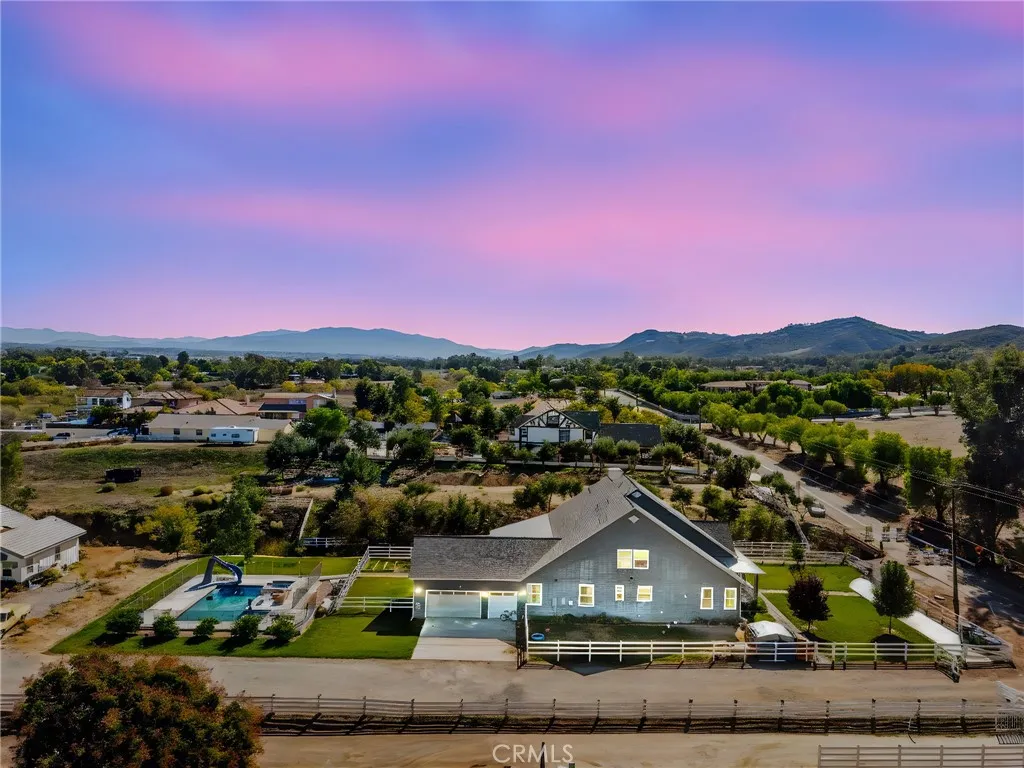 Luxury Farmhouse Living, Entertainers Pool, Wine Cellar & Mountain Views! Welcome to this stunning custom 4,000 SF 6 BR + Loft (used as 7th BR) / 4 BA home just west of historic Old Town Murrieta with gorgeous mountain & creek-bed views. Single-level living with large upstairs loft and seamless indoor-outdoor flow. Chefs Kitchen features custom all wood soft-close cabinetry, 6-burner double oven range with 48 hood & pot filler, 5x10 Bianco Carrara marble island with wine fridge, microwave drawer, and storage galore. Enjoy your own wine tasting room with 11x11 wine cellar, perfect for entertaining. Open the 20 moving glass wall to 440 SF of covered outdoor living space with misters, fan, & surround sound. Relax in the pebble-tec pool & spa with top of the line slide and secure safety fence. Home includes premium LVP flooring, energy-efficient windows, marble bathrooms, and fire resistant siding. Spacious primary suite with barn doors, walk-in closet, dual rain head shower, soaking tub & bidet. Property upgrades include state of the art well pump with artesian spring water, fruit bearing trees, raised bed garden, predator proof fencing, chicken coop with established laying hens (optional), and solar mounted security system. Loft is enclosed with locking door and plumbed for kitchenette or bath. Zoned for agriculture, so bring your animals! 3-car garage (25x33x13H) fits boat or small RV + RV parking. Two tankless water heaters, advanced fire abatement sprinkler system, and neighbors who mind their own business. This property perfectly combines luxury, privacy, and the charm of