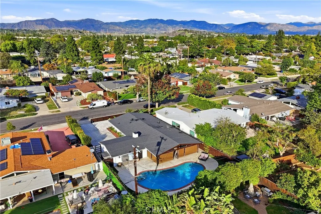 Completely upgraded and turnkey, this beautifully renovated 4-bedroom, 2-bath home is located in a quiet and desirable Granada Hills neighborhood. Featuring approximately 1,560 sq ft of refined living space, the home welcomes you with a bright open layout, waterproof laminate flooring throughout the main areas, and a cozy fireplace in the living room. The modern kitchen is fully updated with quartz countertops, custom cabinetry, tile flooring, and stainless-steel appliances, all included. Both bathrooms have been tastefully remodeled, and the home benefits from upgraded plumbing for long-term peace of mind. Major system upgrades include a brand-new 5-ton HVAC unit, tankless water heater, and a 7-year-old roof. The attached 2-car garage is fully finished, offering additional storage or potential workspace. Step outside to a resort-style backyard perfect for entertaining. Enjoy a heated pool with new equipment, a custom built-in barbecue, covered patio entertainment area, and freshly paved hardscaping, ideal for gatherings year-round. The yard also features mature pomegranate, lemon, and walnut trees, adding natural charm. Additional exterior improvements include new gutters and drainage system, plus a newly paved driveway with pavers that can accommodate up to 6 cars. This home checks all the boxes, updated systems, beautiful finishes, and an amazing outdoor space in a peaceful Granada Hills setting. A true move-in-ready gem.