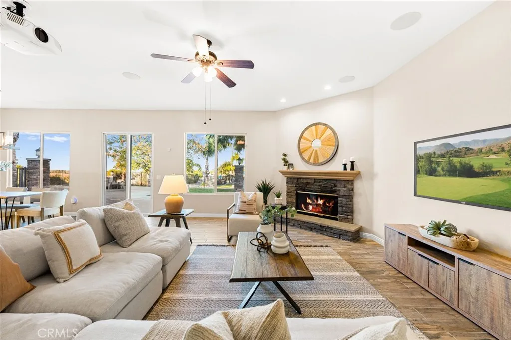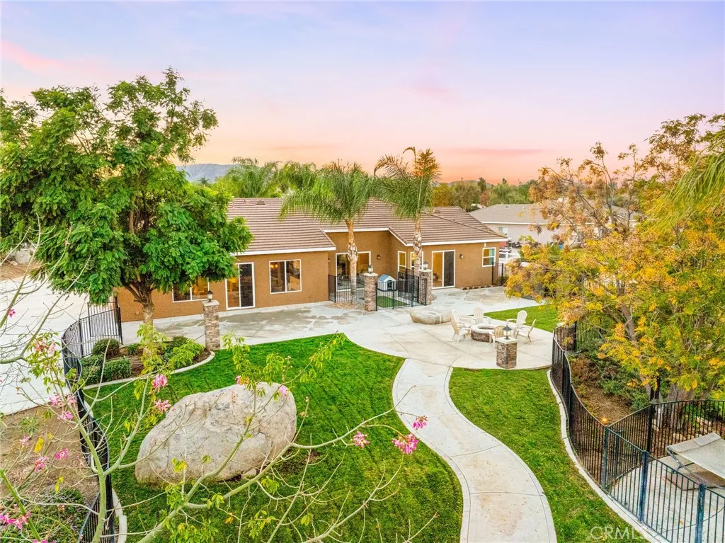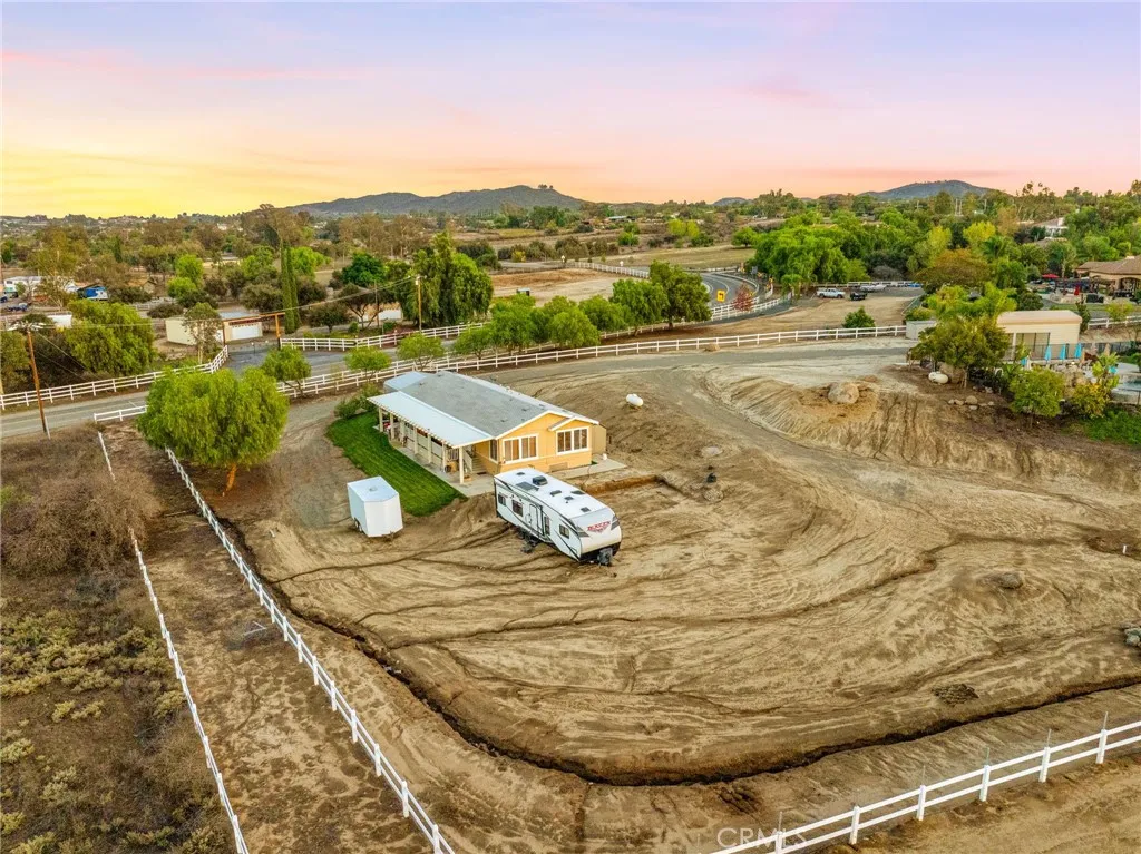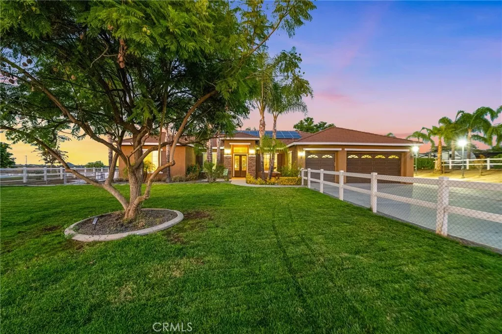 Experience unmatched privacy, sweeping panoramic views, and true resort-style living in the highly desirable Lake Mathews / Gavilan Hills region. Set on nearly 2.5 acres, this stunning estate features a beautifully upgraded main home, a full second dwelling, paid solar, and exceptional outdoor amenities ideal for buyers seeking modern luxury, space, and a peaceful acreage setting with endless possibilities. The property is equestrian-friendly with direct access to nearby horse trails, making it perfect for those seeking land, riding capacity, and rural living without giving up convenience. The main home offers approximately 3,140 sq ft with 4 bedrooms plus an office, 3 bathrooms, a spacious 3-car garage, high ceilings, and an open floor plan with generously sized rooms. Interior upgrades include modern tile flooring, brand-new carpet, fresh interior paint, a fully renovated kitchen, and beautifully updated bathrooms. Step outside to your own private resort. The expansive backyard features a spectacular saltwater pool with a grotto slide, baja shelf/beach entry, two water features, and a spa, all designed to maximize relaxation, entertainment, and total seclusion. The property includes extensive parking and storage including a 40x14 covered RV structure with 50-amp & 30-amp power, water, and an on-site sewer clean-out ideal for RVs, toys, trailers, and off-road vehicles. A custom-timed LED lighting system illuminates a large portion of the grounds, creating a dramatic nighttime atmosphere and offering ready-made lighting for future additions such as a pickleball or basketb