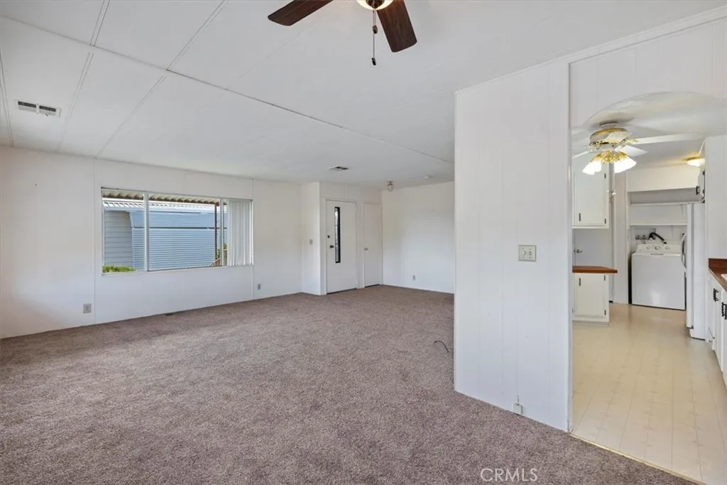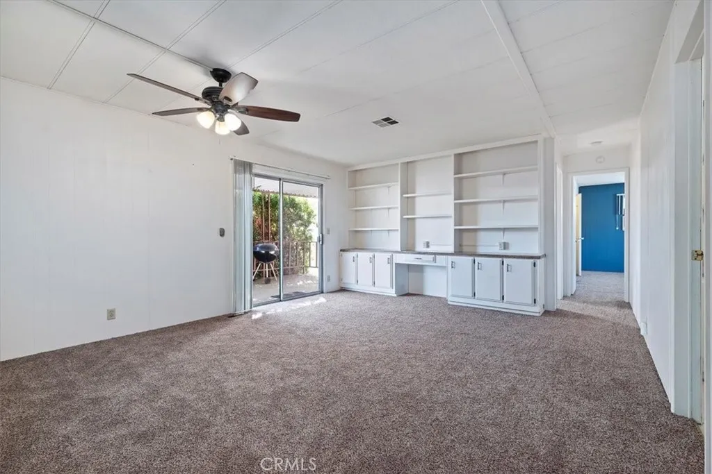 Well-maintained home in the desirable Blue Skies Country Club, an active 55+ community ideally located directly across from the public Hawks Landing Golf Course and The Roost Restaurant. This move-in-ready residence offers new carpet, a spacious private front porch, covered parking accommodating a golf cart, two generous storage sheds, and automatic sprinklers. The home is ideally situated directly across from the community center, pool, and spa for added convenience. The interior features a bright and open living and dining area, complemented by a thoughtfully designed kitchen with a breakfast bar and large pantry. The kitchen opens to a cozy family room with direct access to the front porchideal for seamless indoor-outdoor living. The home includes two well-sized bedrooms, each with walk-in closets. The primary suite features an en-suite bath with dual sinks and a corner garden tub, while the guest bath offers a walk-in shower. Comfort is ensured year-round with central air conditioning, an energy-efficient evaporative (swamp) cooler, and natural gas utilities. This is truly one of the most desirable communities in the area, and this home enjoys one of the premier locations within the park. A must-see opportunity. Call today for your private showing!
