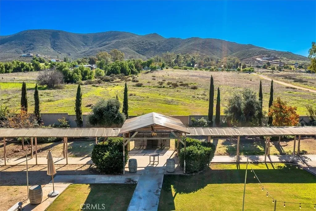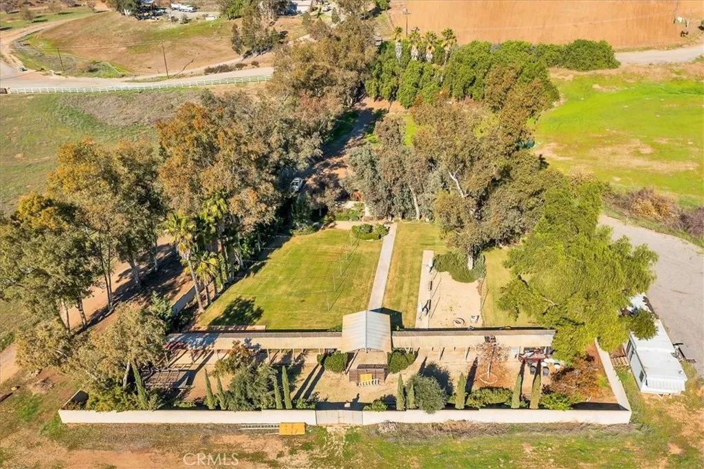 Beautiful treelined 4.44 useable acres in Winchester with endless potential. Wedding or event venue neatly manicured and private with all the trimmings to include lights, lawn, fire pit, bar, trees and covered areas! Plenty of room for parking, additional home or other structures. This is a must see! Peaceful and unique with mountain views. Very well maintained 3 bedroom, 2 bathroom manufactured home with a fenced yard for the kids or pets as well as a concrete slab next to the home for a sport court or potential garages. There is also a very high producing well eliminating a city water bill! So many extras! Conveniently located yet removed from city bustle, this remarkable property blends timeless beauty with practical functionality. Whether it's your family sanctuary or business venture dream come true. Close to Temecula Wineries and located in the award winning Temecula School District.