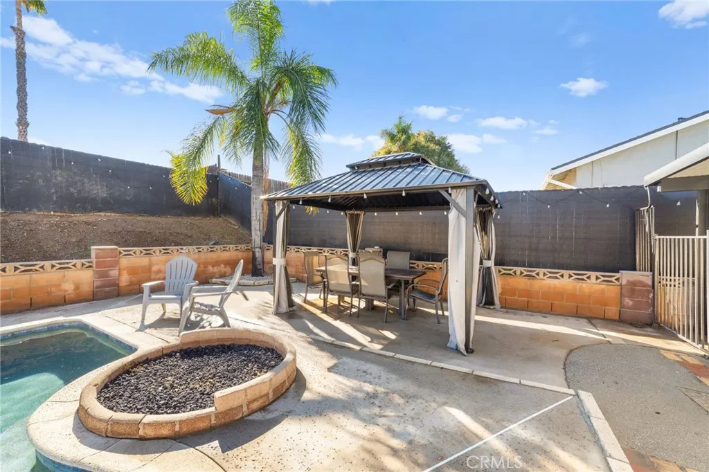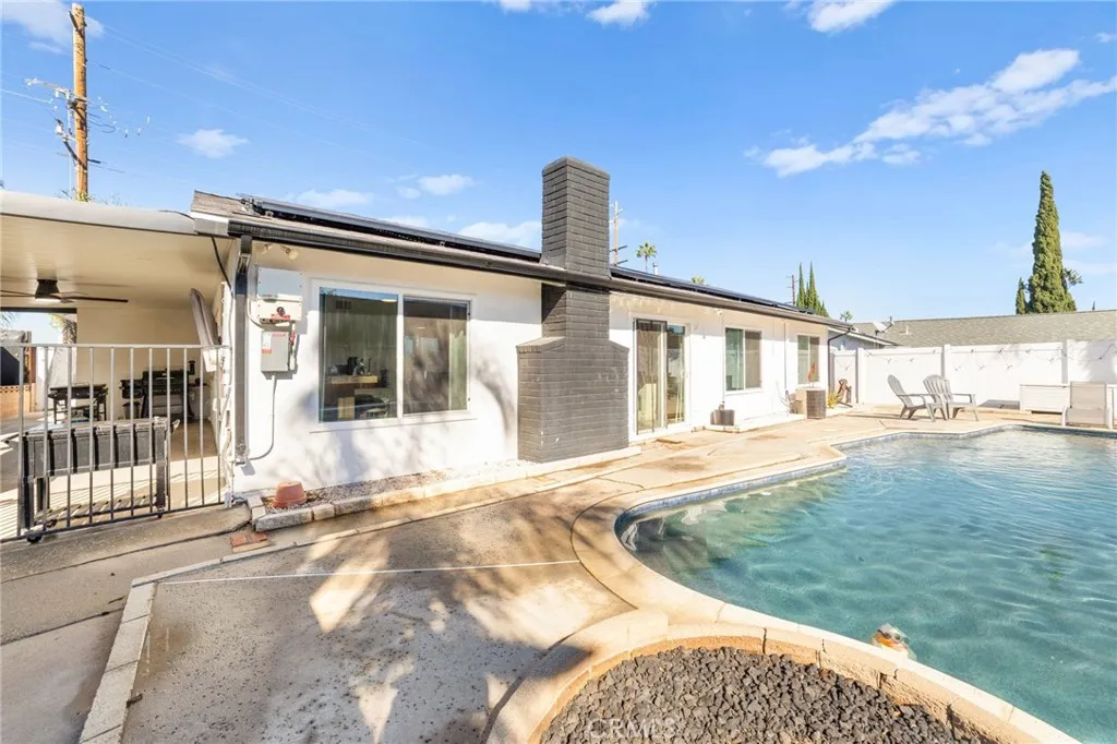 Welcome to this beautifully renovated single story, three bedroom, two bathroom pool home w/FULLY PAID OFF SOLAR in the highly desirable South Corona area. There are 23 - 400 watt (9.2 Kilowatt) solar panels that have saved roughly $400 a month! The open concept living room invites you in while you are greeted by views of the newly refurbished pool. Recently remodeled with pebble tech coating, new water line tile and brand new equipment, this pool is primed and ready for your next party! The outdoor look is complemented by a metal gazebo, above ground spa, string lights, privacy screening, a circular fire-pit and a newly installed side-yard patio cover. All your outdoor entertaining needs are happily fulfilled, providing comfort for your guests for cooking and lounging year-round. This home is move-in ready with fresh paint inside and out, and brand new drywall in the 2-car attached garage & new insulation in the attic, as well as a whole house fan for better temperature control in the hot summers. Don't forget the storage room in the garage, as well, which is perfect for tools or crafting! The bright kitchen is updated with new cabinets surrounding the fridge and black hardware. The gas fireplace and wood accent wall add a nice touch of warmth to your living room. The roof is seven years new, and the whole home has newer dual pane windows. The primary bathroom was completely remodeled in February this year. The home comes w/a Vivint smart home security system that has sensors on each door & smart light switches that can be controlled from your phone or Alexa device. Comple