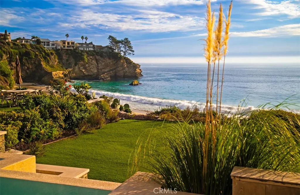 A truly unparalleled offering, this rare oceanfront estate in the coveted, guard-gated enclave of Three Arch Bay presents an extraordinary chance to shape one of Laguna Beachs most significant coastal properties. Poised above the communitys iconic private cove, the residence commands sweeping, unobstructed views of the Pacific and enjoys direct access to the sandan amenity few homes along the coast can claim. Set on a sprawling, flat oceanfront parcel with a pool, spa, and meticulously landscaped grounds, the property offers a spectacular setting where land, sea, and architecture converge. The existing structurestripped to the studs and ready for transformationprovides an exceptional framework for the next owners vision. Towering ceilings, vast expanses of glass, floating staircases, and a commercial-grade elevator lay the groundwork for a world-class contemporary retreat that lives in rhythm with the shoreline just beyond. Every level opens to expansive terraces and floor-to-ceiling sliding walls of glass, dissolving the boundary between indoors and out while capturing the drama of the coastline. The lower level spills effortlessly onto the pool terrace and oceanfront lawn, creating a breathtaking backdrop for everyday living and unforgettable gatherings. Thoughtfully designed in collaboration with FRANK and CJ Light, the home is offered with fully approved plans and permitsan invaluable advantage that allows construction to commence immediately, saving years of time and complexity. The plans also provide the ability to expand, including options for two additional bedrooms