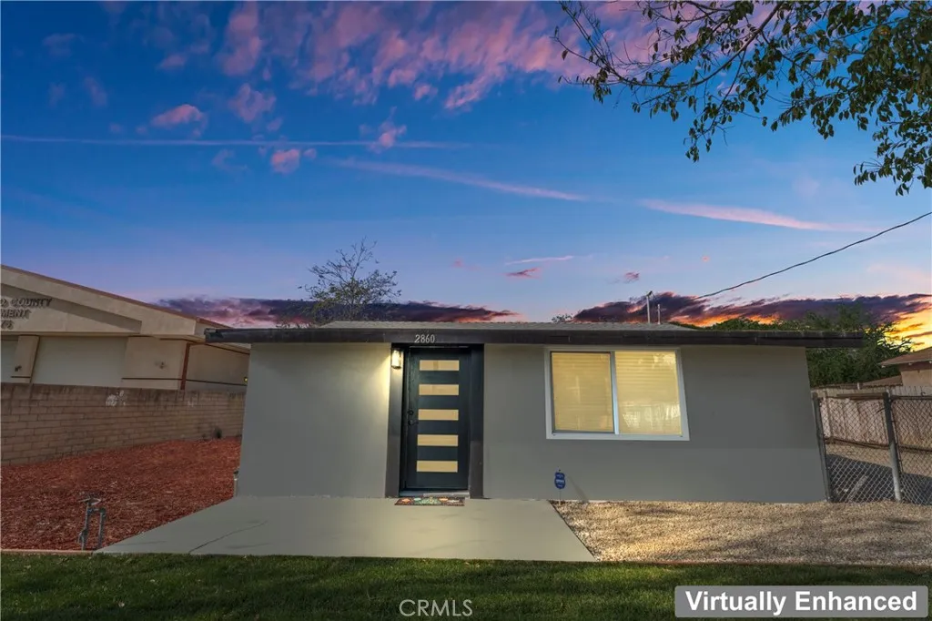Welcome to 2860 N Macy St, The home offers 1 bedroom and one bath plus an small bonus room that could be use as an office, hobby room, kids room or guest room. This renovated Home featuring new paint inside out, recessed lighting, new dual pane windows, new roof shingle, water proof vinyl flooring throughout the house and new Remodeled Gorgeous kitchen with new white cabinets, Quartz countertops, new Mini Split AC system, New upgraded electrical panel. Home offers a Huge detached garage, spacious front / back yard, new septic system and plenty of parking. The back building on the back is permitted as a Dettached Garage 29'X 41' =1189 sq ft to store your working equitment, your big toys or your RV. It can potentially be converted as a second dwelling. Home is located close proximity to restaurants, shopping, 210 Frwy and easy access to mountain areas like crestline and lake arrowhead. Come to see it for your self and imagine the full potential this property offer with its huge lot of over 20,000 sq feet that is almost half of an acre. Please call your agent to view this property before it is gone.