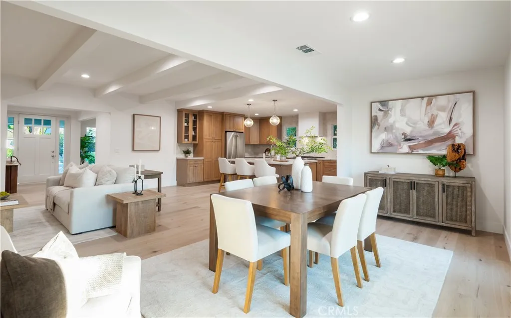 PARK ESTATES SINGLE LEVEL POOL HOME | Completely transformed with today's most desired features and finishes, this stunning residence embodies the warmth and ease of an organic California ranch style home where curated design, natural materials, and thoughtful craftsmanship come together in perfect harmony. Every space has been thoughtfully redesigned with a focus on effortless indoor-outdoor living. Featuring all new engineered oak flooring and a calm, cohesive palette that guides you through beautifully redefined spaces. The formal living room off the entry features a fireplace and sliders leading to a serene private patio, one of several outdoor spaces throughout the property. The gorgeous open concept kitchen features a large island with Taj Mahal quartzite, custom backsplash, generous use of cabinetry, all-new appliances, and an inviting flow into the family room. A walk-in butlers pantry with beverage service, additional cabinetry, and wine fridge elevates both daily living and effortless entertaining. A well-placed powder room off the kitchen also connects directly to the pool and is ideal for enjoying sunny days outside. The family room centers around a cozy fireplace and opens to the adjacent dining room. All the bedrooms and bathrooms have been fully upgraded with designer-selected tilework, fixtures, and finishes. The separate bedroom wing boasts three bedrooms and two additional bathrooms. The primary suite off the pool features backyard vistas, a walk-in closet and a stunning spa-inspired bath. The exterior is just as thoughtfully renewed...the pool has been re