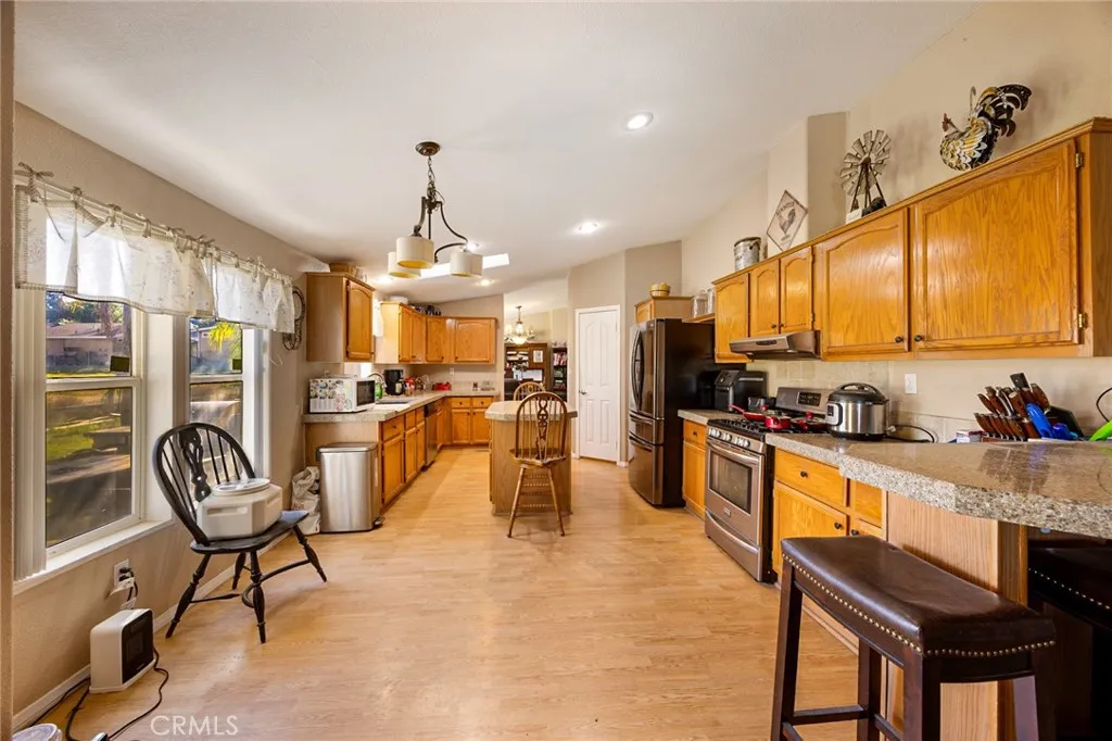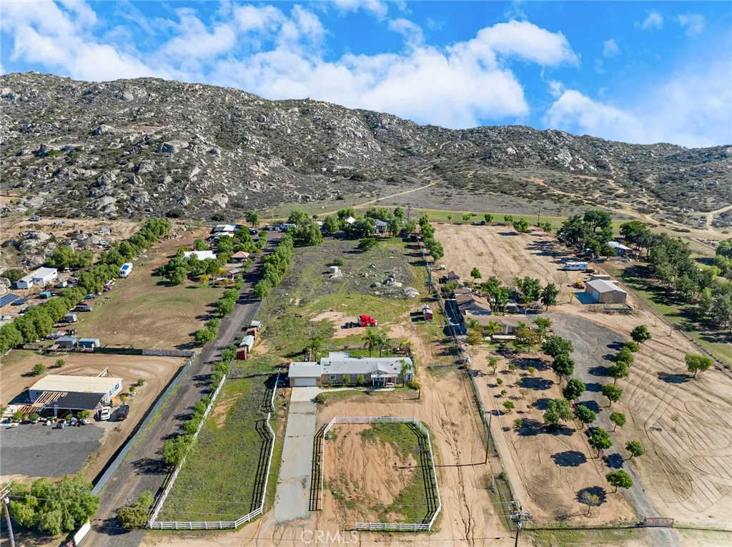 Looking for a 4-bed home in Homeland with land, views, and horse setup under $500K? This single-story ranch at 24090 Juniper Hills Rd sits on 2.83 flat acres with usable space, outbuildings, and open skies. Room to ride, room to grow, and room to breathe. This 1,944 square foot home offers a spacious open floor plan with vaulted ceilings, neutral paint, laminate flooring, and custom plantation shutters. The kitchen features upgraded countertops, stainless steel appliances, a large island, and a walk-in pantry, flowing into a welcoming family room with a fireplace and built-in entertainment niche. The primary suite is thoughtfully separated from the other bedrooms and includes a custom walk-in closet, a jetted tub, and a separate shower. Ceiling fans are installed throughout, and there's an interior laundry room for added convenience. Outside, the property truly shines: five storage sheds, a front arena, a fenced pasture with custom vinyl fencing, and easy trailer access from both sides of the lot. The oversized 2-car attached garage and long drive provide plenty of parking. A fenced pet yard and covered patio let you enjoy outdoor living year-round. With a little TLC, this country property will be the homestead youve dreamed of. Enjoy panoramic mountain and valley views with no HOA, low taxes, and plenty of space for your horses, toys, gardens, or even a future ADU.