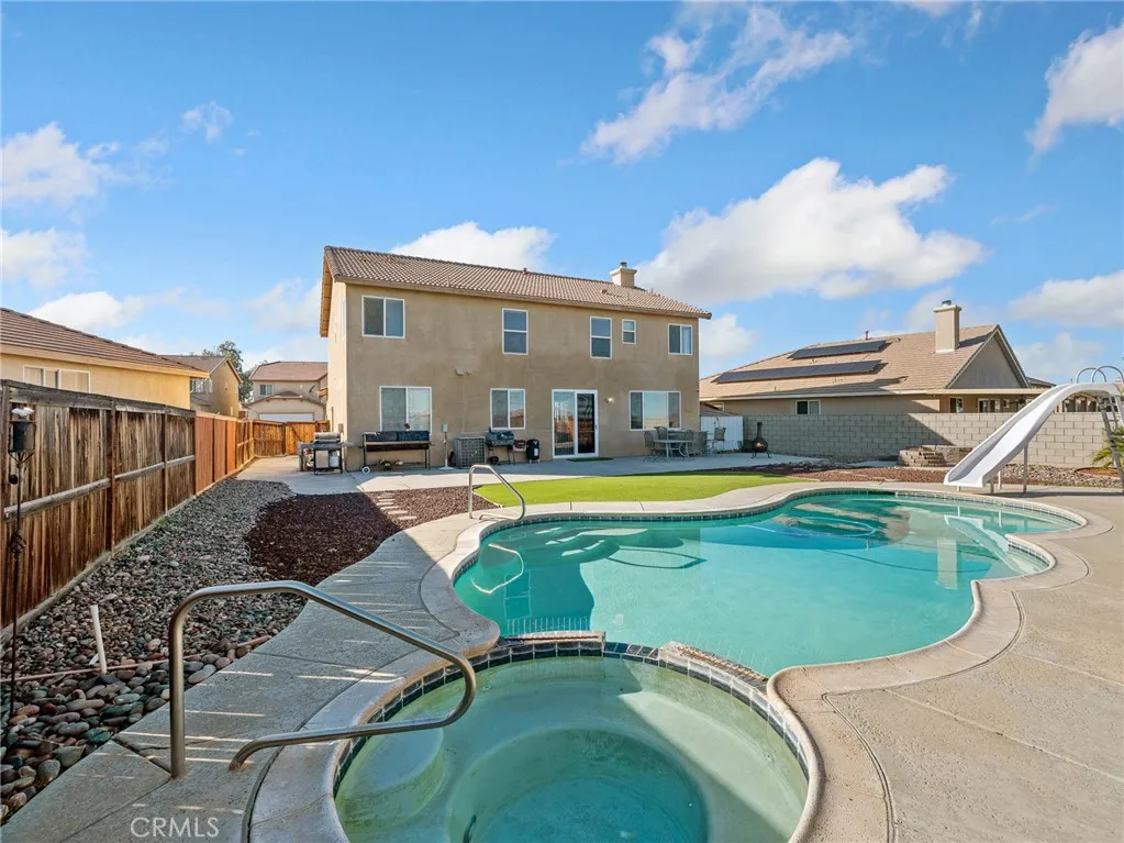 Welcome to this spacious 5-bedroom, 3-bath pool home with a loft, offering the perfect blend of comfort, functionality, and entertainment. The main level features a bedroom and full bathroom, ideal for guests or flexible living arrangements. Enjoy multiple living areas, including a formal living room, family room with a cozy fireplace, and a dedicated dining room. Upstairs, youll find four additional bedrooms, a generous loft, and the convenience of an upstairs laundry room. Outside, step into your private retreat with a sparkling pool and spa, perfect for relaxing or hosting gatherings. This home delivers the space you need and the lifestyle you wantdont miss this opportunity!