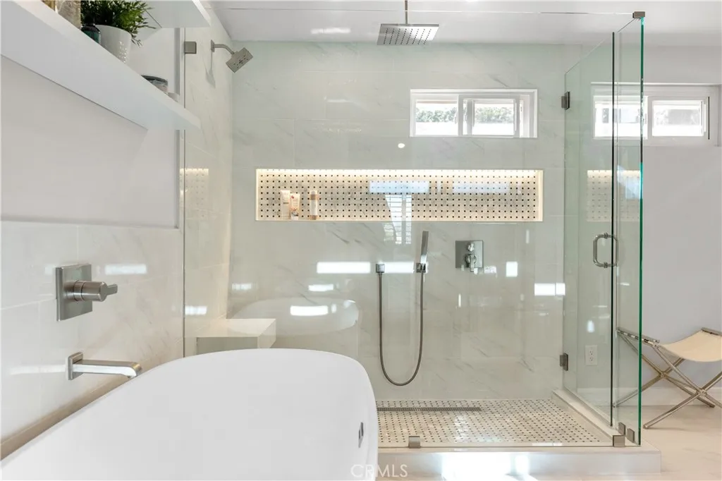 Welcome to Park Jazzmin. A gated waterfront residence on Calabasas Lake, redesigned with an emphasis on clean lines, natural finishes, and seamless indooroutdoor living. The main level is thoughtfully arranged to bring the lake into the living space. Custom accordion doors open the living room to the waterfront patio, while French doors connect the kitchen to a landscaped garden, creating a calm, open circulation between each space. The kitchen blends performance and simplicity with Viking appliances, custom stone counters, and generous storage space. A bedroom and full bath on the main level offer privacy for guests, multigenerational living, or a dedicated office suite. Upstairs, two full bedroom suites are positioned to capture views across the lake. The primary suite includes a private sitting room, a custom closet, and a newly designed en suite finished with refined materials. The secondary suite offers its own full bath and additional closet space. Additional features include a dedicated laundry room and an attached two-car garage for everyday ease and functionality. Park Jazzmin sits along a private cul-de-sac directly on the water, with access to the lakefront walking trail, community pool, spa, and tennis courts.