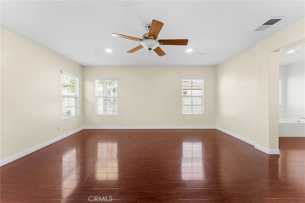 TURNKEY AND READY FOR THE NEW YEAR! This stunning 5 bedroom home is situated within the gated La Rivera community, which offers a range of amenities including a pool, spa, clubhouse, playground, and security. The property boasts breathtaking mountain views and is conveniently located near biking trails, parks, shopping, entertainment, and 91, 60, and 215 Freeways. Inside, the home features a formal dining and living area, as well as a spacious family room with fireplace. The open-concept kitchen perfect for culinary enthusiasts offers an island with bar seating. Downstairs also offers a bedroom and full bathroom, and laundry room with direct garage access. Upstairs, you will find three additional bedrooms, small loft with cabinets, and plus a generous primary suite. The primary bathroom offers a large walk-in closet, a separate bathtub and shower, and dual sinks. Additional highlights of the home include fresh interior and exterior paint, laminating flooring, artificial grass in front yard, and a 2 car garage. Don't miss the opportunity to make this exceptional property your own!