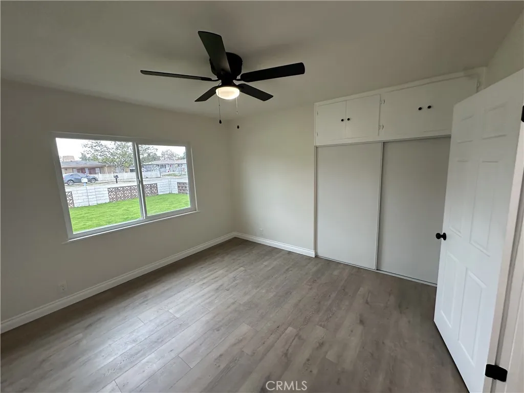 Beautifully Remodeled Bloomington Home with Space, Parking & Endless Potential! 3 bedrooms, 1 bath home located in the heart of Bloomington. New interior and exterior paint, waterproof laminate wood flooring throughout, and recessed lighting. All three bedrooms feature ceiling fans, new closet doors. Brand new kitchen with new cabinets, quartz countertops, and updated finishes, fully remodeled bathroom offers a fresh, contemporary design. Brand-new windows throughout provide energy efficiency and lots of natural light. Separate indoor laundry room. Has a large, spacious backyard with RV or boat parking and plenty of room for multiple vehiclesideal for mechanics, contractors, or buyers with work trucks, tools, or equipment etc. The expansive lot also offers great potential for horses, animals, or additional outdoor projects. A detached two-car garage with a brand new garage door or possibly add an ADU. Centrally located near schools, shopping, and freeway access, turnkey home with modern upgrades and rare outdoor space.