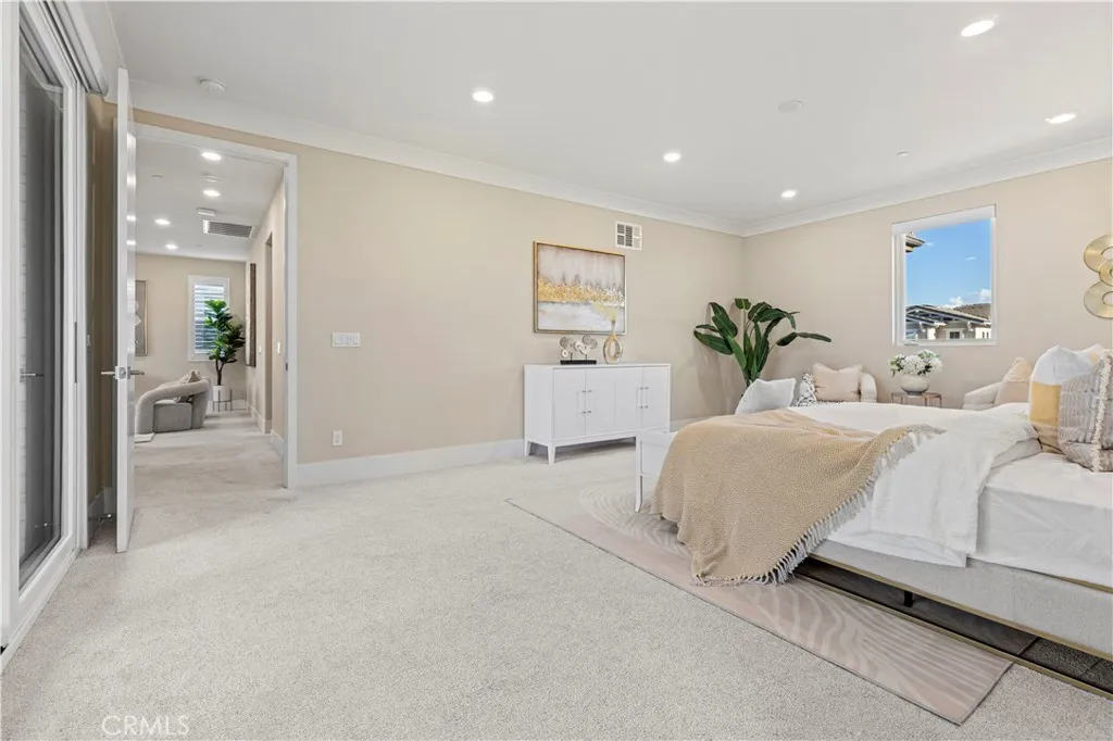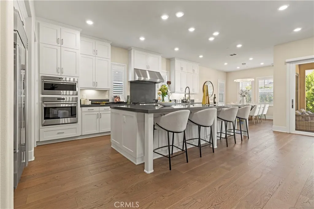Welcome to 59 Crater, an exceptional NEXT-GEN luxury residence located within the prestigious 24-hour guard-gated Altair community at Great Park, one of Irvines most sought-after addresses. Built in 2019, this meticulously designed home offers 4,238 square feet of modern living space on a 5,850-square-foot lot, featuring four bedrooms and six bathrooms, with each bedroom thoughtfully designed to include its own private en-suite bath, delivering both comfort and privacy. From the moment you enter, the home impresses with its expansive open-concept layout, abundant natural light, and refined architectural style. The main living areas are anchored by elegant hardwood flooring and oversized windows, creating a bright and welcoming environment that flows seamlessly from the great room to the dining area and beyond. The heart of the home is the chef-inspired kitchen, beautifully appointed with white contemporary cabinetry, quartz countertops, a large center island, walk-in pantry, premium Wolf appliances, a custom Sub-Zero refrigerator, and a built-in wine refrigerator, making it as functional as it is striking. Designed with rare flexibility, the home features a highly desirable private NEXT-GEN suite with its own separate entrance, living area, bedroom, bathroom, and dedicated laundry, ideal for multi-generational living, guests, or a private office retreat. Sliding glass doors enhance the effortless indoor-outdoor connection, opening to a private backyard complete with a built-in outdoor fireplace, perfect for entertaining or relaxing under the Southern California sky. The upp