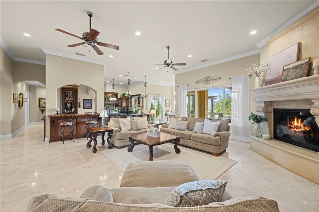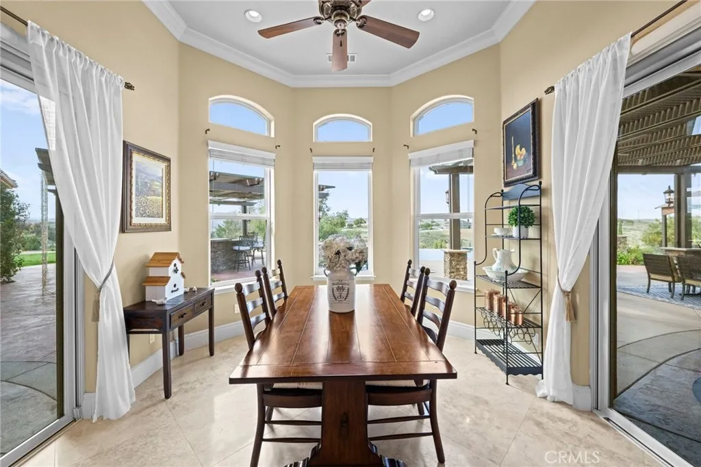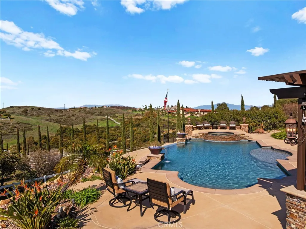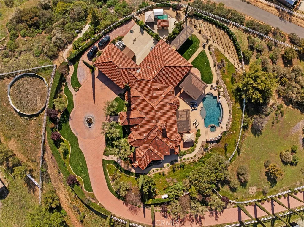 Private 5.65 acres of rolling hills in the peaceful community of La Cresta, 21051 Via Sevilla is a contemporary single-story estate offering 5,152 square feet of refined living. This property blends luxury, privacy, and the natural beauty of Southern Californias countryside into one exceptional retreat. The home features five spacious bedrooms, five bathrooms, an office, a game room, a library, and an exercise roomeach space thoughtfully designed for comfort and versatility. Inside, coffered lighting and an effortless layout create a warm, welcoming flow. The gourmet kitchen stands out with high-end appliances, an oversized walk-in pantry, and a generous center island, making it perfect for everyday living and effortless entertaining. It opens to expansive living and dining areas, where large windows frame sweeping views of the surrounding landscape. A stylish wet bar and a temperature-controlled wine roomcapable of storing up to 400 bottlesadd an elevated touch for those who love to host. The primary suite is a true sanctuary, complete with two fireplaces, a spa-inspired bathroom, and dual walk-in closets. Each additional bedroom includes its own en-suite bathroom and walk-in closet, showcasing the homes attention to detail and craftsmanship. Step outside to a resort-style oasis featuring a sparkling pool, spa, and a fully equipped outdoor kitchen. The grounds are beautifully landscaped and enhanced by a charming boutique vineyardan exceptional feature for wine enthusiasts. A high-capacity 100 GPM well provides ample water for the vineyard and fruit trees. With generous fl