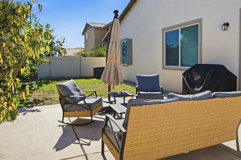 Welcome to 34392 Lapis Ct, a beautifully updated single-story home located in one of Murrietas most desirable communities. This 3-bedroom home with a den offers a refined blend of comfort and versatility, featuring brand-new flooring and fully paid solar for energy efficiency and long-term savings. The open, light-filled floor plan is ideal for everyday living and entertaining, with a flexible den perfect for a home office or guest space. The expansive primary suite features a spa-like bath with quartz countertops, dual vanities, soaking tub, separate glass shower, and an oversized walk-in closet. Secondary bedrooms are served by a stylish bath with granite counters and dual sinks, plus an additional guest bath near the separate laundry room with built-in storage. The great room showcases high ceilings and a gourmet kitchen with a 19 granite island, designer cabinetry, upgraded granite countertops and backsplash, pendant lighting, walk-in pantry, and GE Profile stainless steel appliances, including a double oven and 5-burner cooktop. Ceiling fans throughout. A 2-car attached garage adds convenience and storage. Enjoy resort-style community amenities including pools, BBQ areas, and lounging spaces. Conveniently located near top-rated schools, parks, trails, golf courses, shopping, dining, Temecula wineries, and major commuter routes. Move-in ready and impeccably maintained!