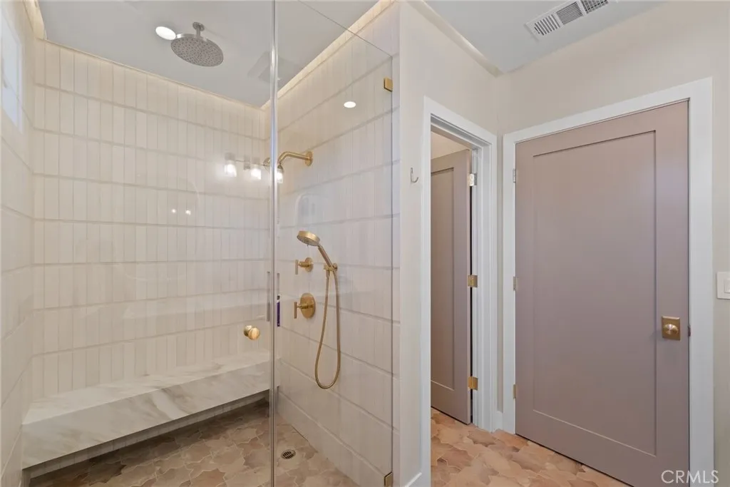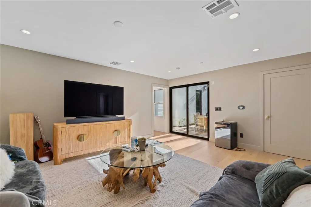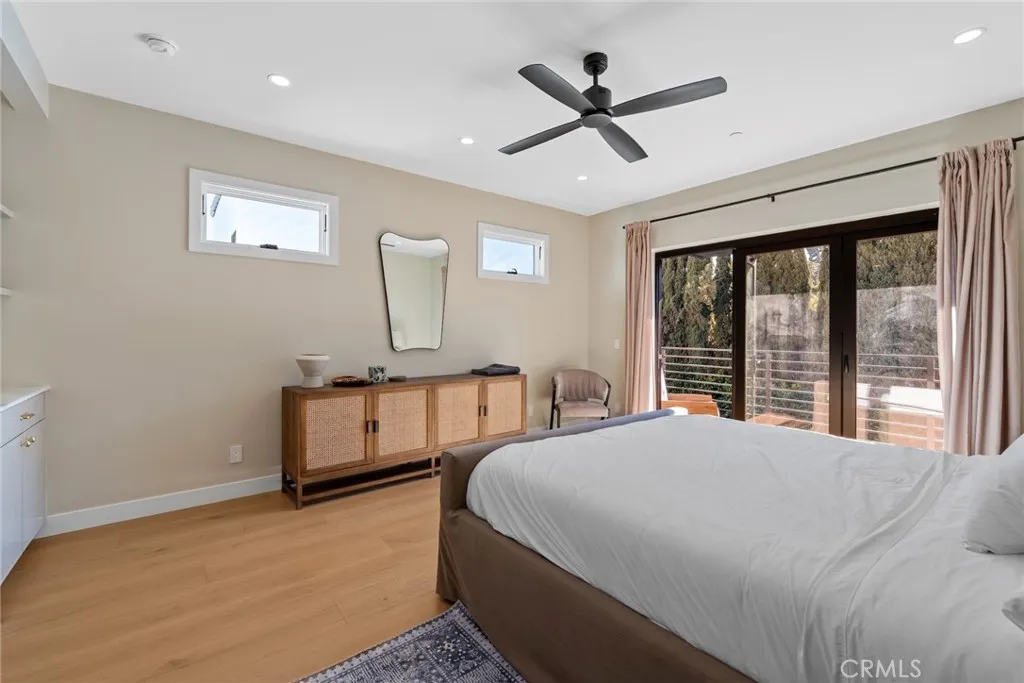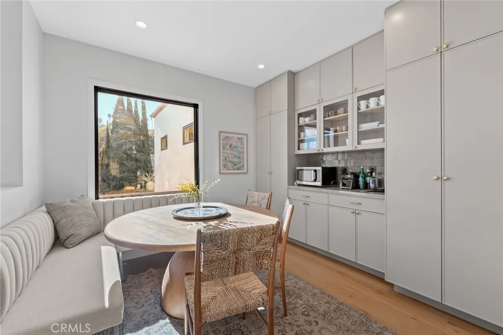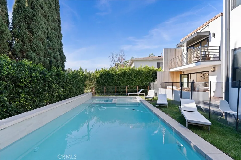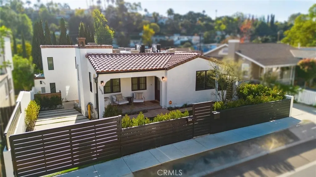 A fully gated, architecturally reimagined Silver Lake estate offering rare privacy and resort-style living. Architecturally reimagined in 2023/2024, the home was rebuilt to the studs and expanded with a new second story, totaling 2,773 sq. ft. The property also includes a newly built two-story 809 sq. ft. ADU and a newly constructed heated saltwater pool, spa, and baja shelf, framed by mature trees, privacy hedging, and new hardscape. Located within the Ivanhoe School District and moments from the Silver Lake Reservoir and neighborhood dining and shopping, the home offers tranquility without compromise. The main residence features two true primary bedroom suites (one upper level, one lower level), an additional upstairs bedroom, a downstairs den opening to an outdoor dining area, multiple decks, and a flexible bonus space for office, gym, or storage. Past the newly landscaped front yard and custom iron front door, the home opens to a living room with an updated fireplace and chimney, flowing into a chefs kitchen with slim-shaker soft-close cabinetry, Calacatta Taupe Quartzite counters and island, Zia Zellige backsplash, Rejuvenation hardware, Newport Brass fixtures, and a Thermador appliance suite. The dining area overlooks Cyprus trees and the pool, with a nearby flexible room for office or family use. Upstairs features the upper-level primary suite in a private wing with walk-in closet, balcony, and spa bath with Calacatta Gold marble dual vanity, Kohler rain shower, and Zia Zellige tile, plus an additional bedroom, hall bath with Crema Breccia finishes, and full laundry