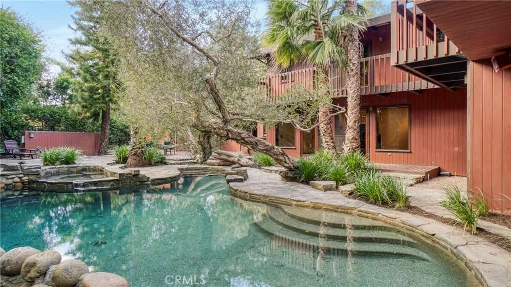 Behind private gates in Malibu, this elegant 3,448 sq ft, two-level estate offers exceptional privacy and resort-style living on impeccably landscaped grounds. The home features 4 bedrooms and 6 bathrooms and is serviced by a private elevator. The main level includes a bedroom, separate maids quarters, an attached pool house, and a dedicated laundry room. The gourmet kitchen features a center island and eating area, opening to a family room with fireplace. A formal dining room with fireplace and a formal living room with French doors lead to the lush backyard. Upstairs, the expansive primary suite offers an ensuite bath and two private offices. A secondary bedroom features its own ensuite bathroom. The serene outdoor setting includes a pool and spa overlooking a picturesque creek, creating a private retreat ideal for entertaining and relaxation. This gated Malibu residence combines luxury, privacy, and timeless appeal in a coveted location. Behind private gates in Malibu, this elegant 3,448 sq ft, two-level estate offers exceptional privacy and resort-style living on impeccably landscaped grounds. The home features 4 bedrooms and 6 bathrooms and is serviced by a private elevator. The main level includes a bedroom, separate maids quarters, an attached pool house, and a dedicated laundry room. The gourmet kitchen features a center island and eating area, opening to a family room with fireplace. A formal dining room with fireplace and a formal living room with French doors lead to the lush backyard. Upstairs, the expansive primary suite offers an ensuite bath and two private o